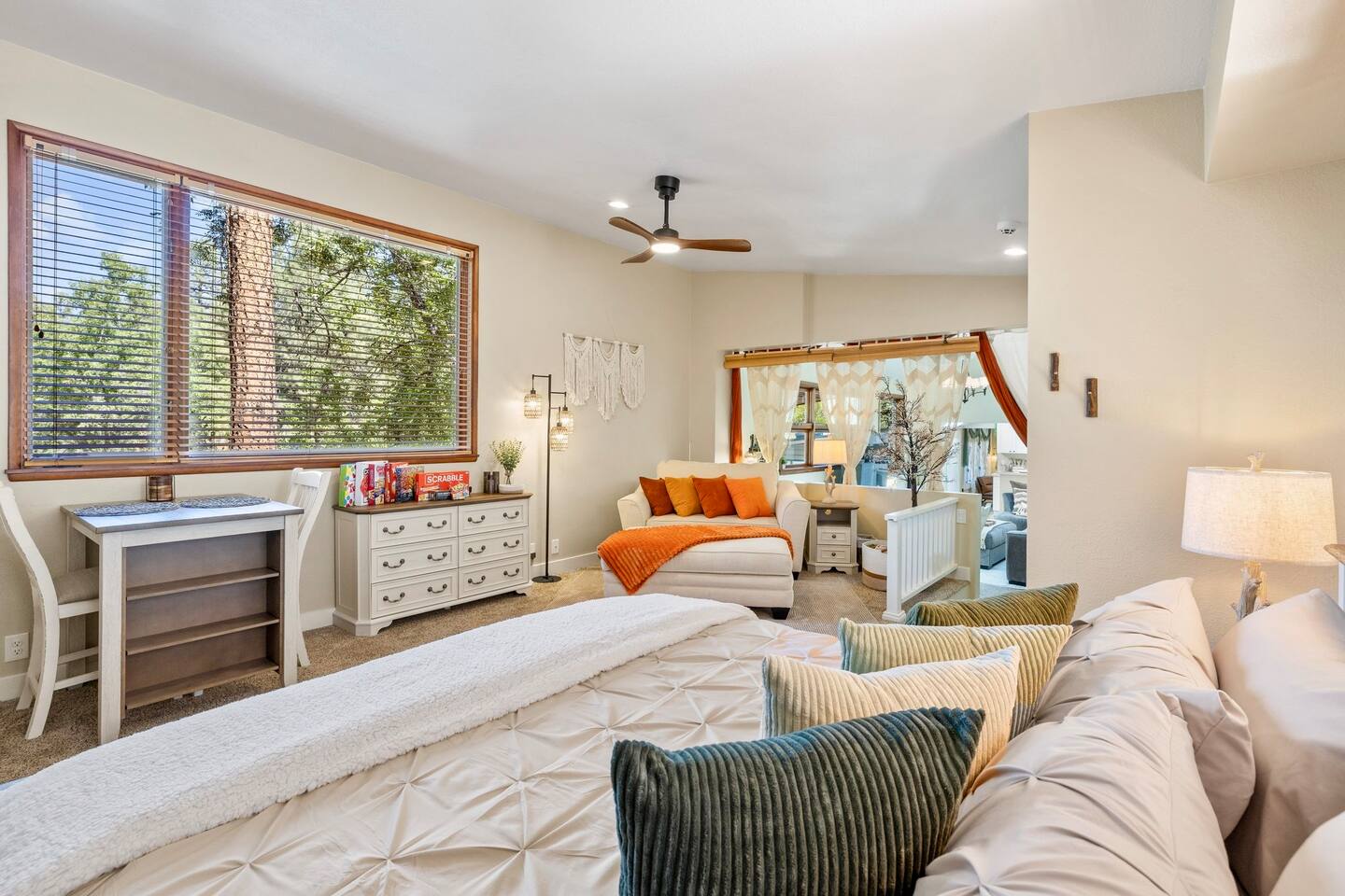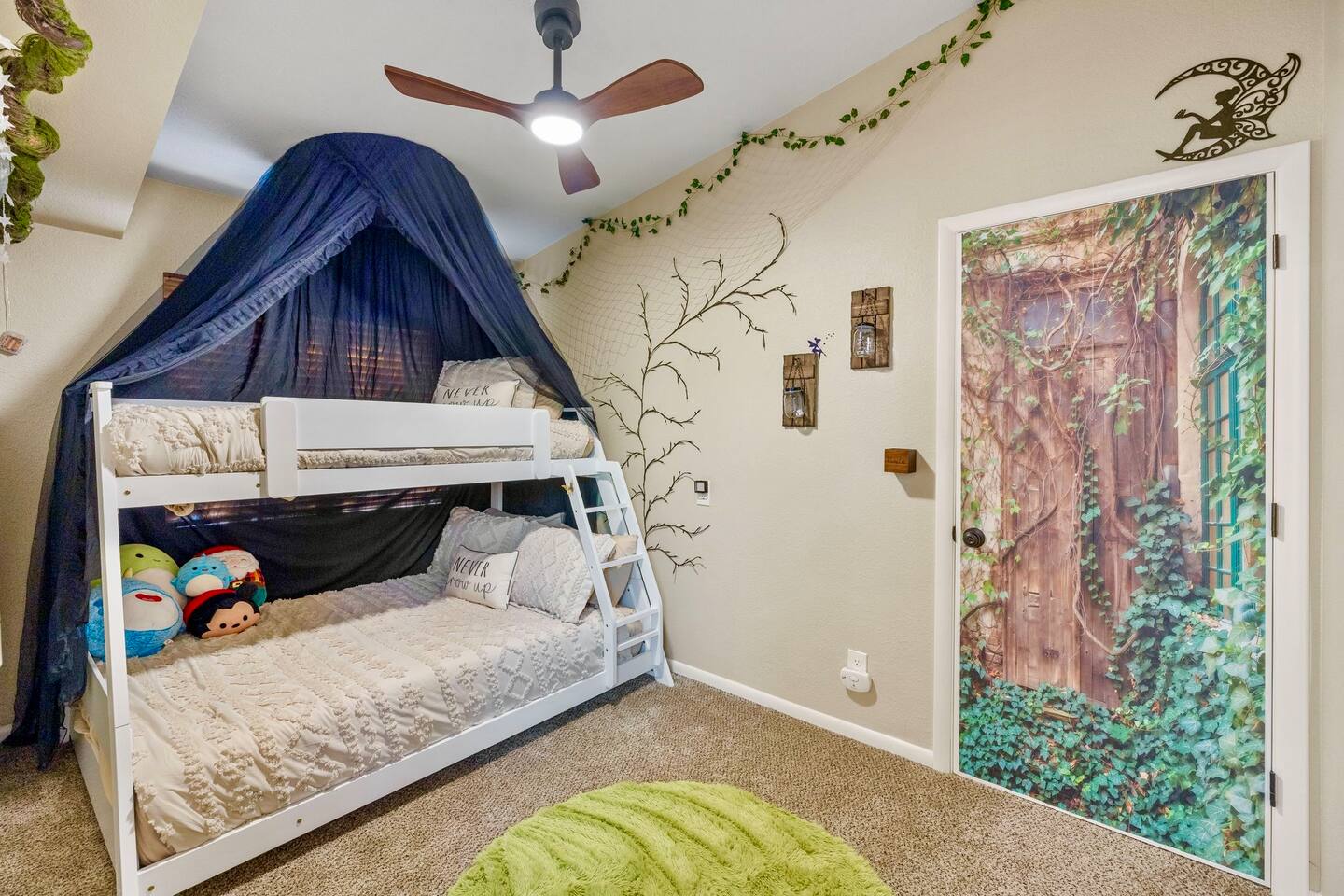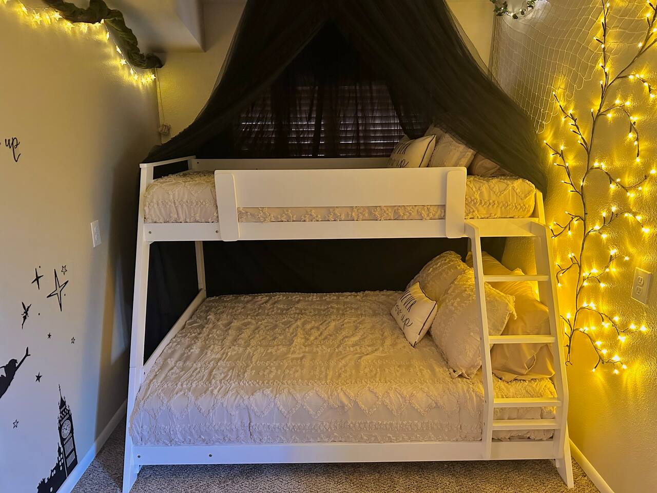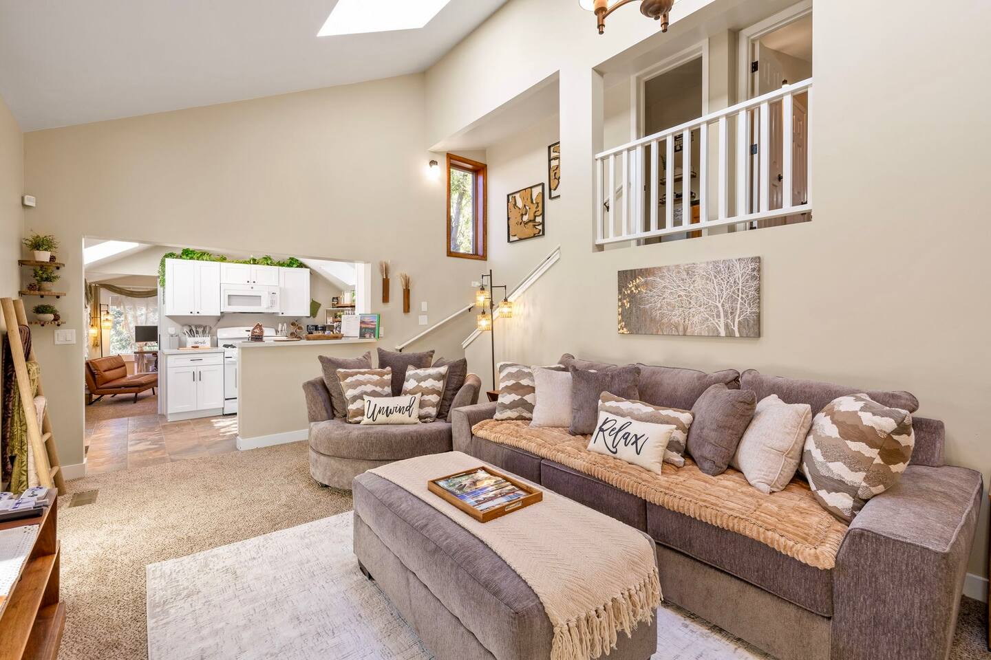 Welcome to the Treehouse, Prescott’s Favorite home away from home in the serene Mountain Club neighborhood, just 5 minutes from Courthouse Plaza! Enjoy a well appointed kitchen with everything you need, including a Keurig/drip combo with complimentary coffee and appliances like a blender and ice maker. Relax in the cozy living room with comfortable seating, a sofa bed, and an 85” smart TV, complete with a nostalgic Nintendo 64 and plenty of books, all bathed in natural light. Gather around the dining area, which comfortably seats six, making family meals a joy. Bedroom Highlights: - Master Bedroom: Indulge in a king-sized bed, dresser, nightstand, and forest views, plus an en suite bathroom with a soaking tub, shower, double sinks, and a large walk-in closet. - Bedroom 2: Bright and airy, featuring a daybed convertible to a king or two twin beds, along with a dedicated workspace with a desk and monitor. - Kids Room: Delight in the Peter Pan-inspired decor, complete with a twin-over-full bunk bed, canopy, and cuddly plushies. - Bonus Bedroom: A semi-private king-sized loft with a game table, loveseat, ottoman, and dresser for added comfort. Bathrooms: Enjoy the luxury of a master en suite bathroom and a second bathroom with a shower, both stocked with premium amenities, plus a convenient half bath. Special features: • Garage converted into a gym • Mountain bikes for local trails • Two paddle boards and a kayak for outdoor fun • Outdoor lighting and seating • Phenomenal Hospitality during your stay Book your stay in the Treehouse and create unforgettable memories in Prescott, Arizona!