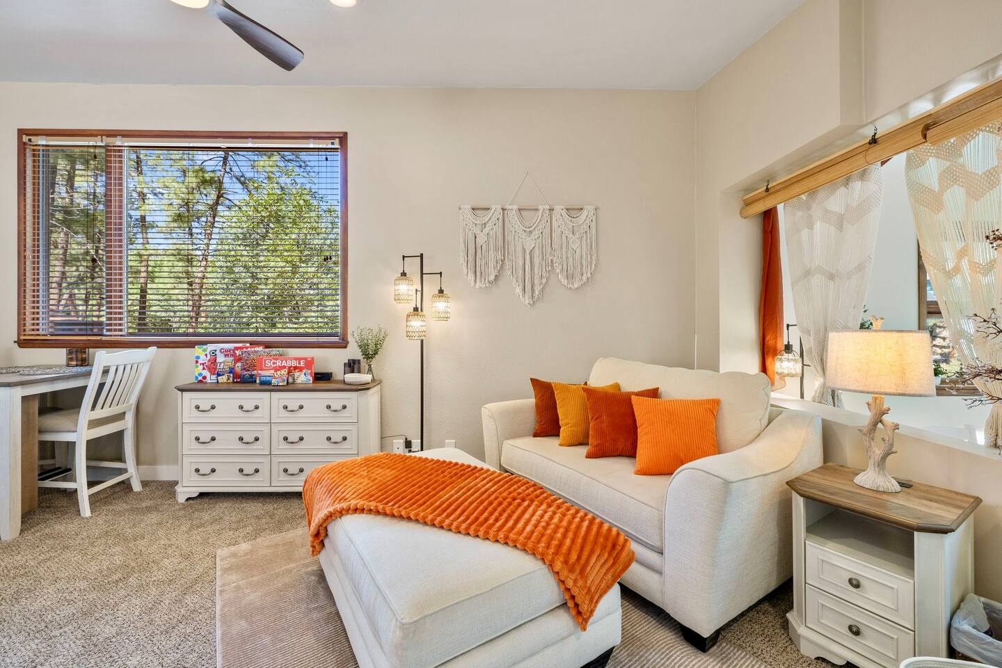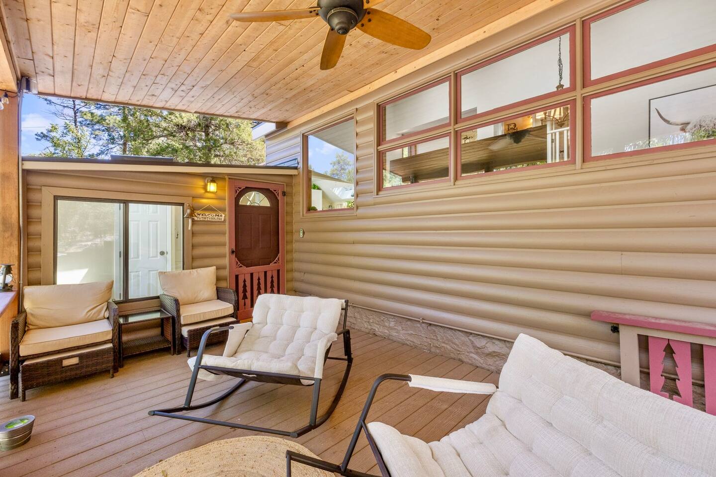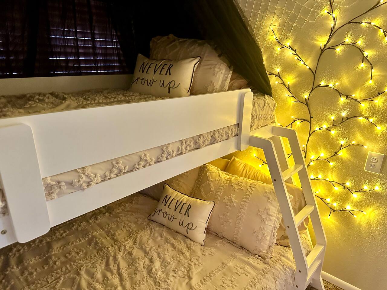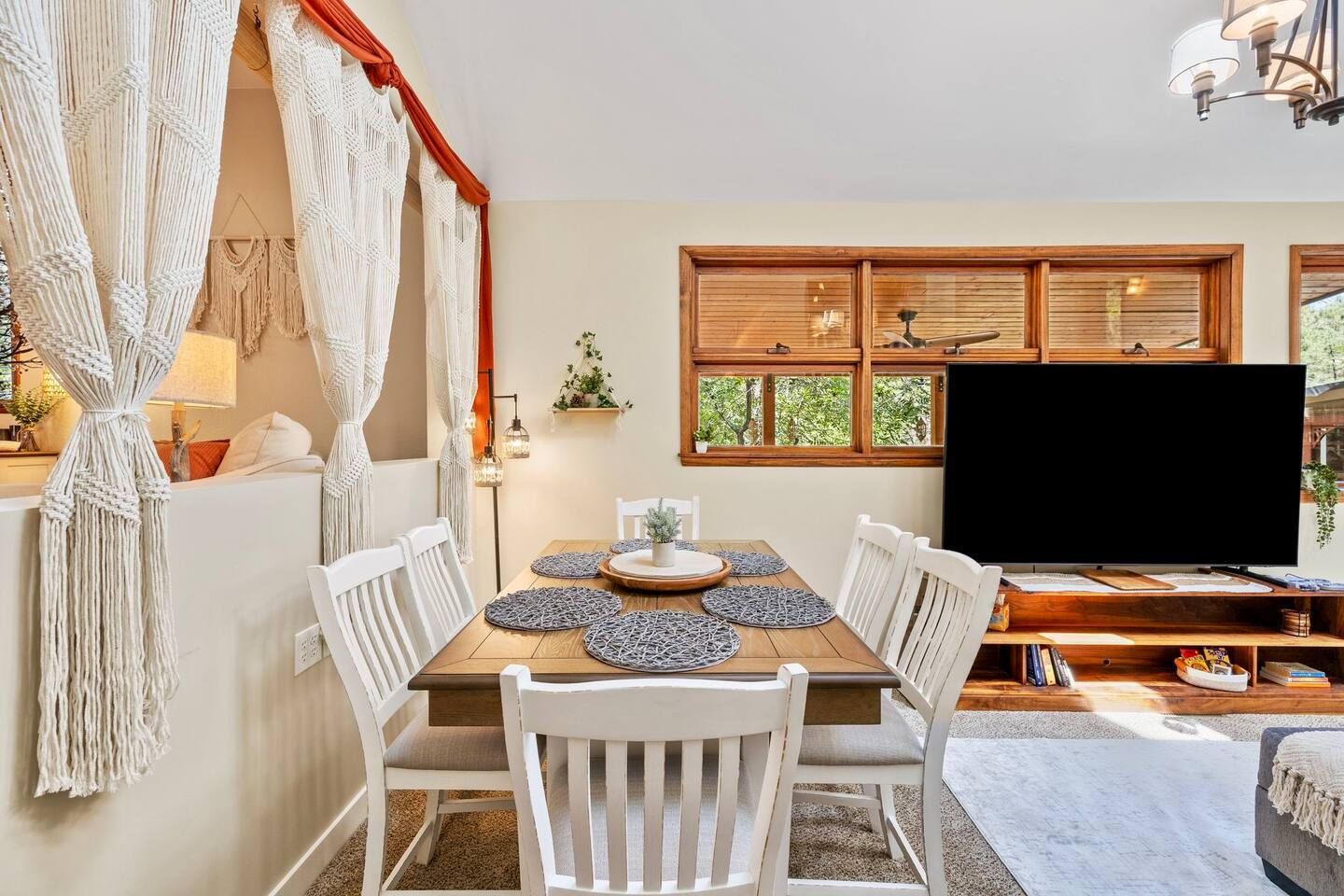Welcome to the Treehouse, Prescott’s Favorite home away from home in the serene Mountain Club neighborhood, just 5 minutes from Courthouse Plaza! Enjoy a well appointed kitchen with everything you need, including a Keurig/drip combo with complimentary coffee and appliances like a blender and ice maker. Relax in the cozy living room with comfortable seating, a sofa bed, and an 85” smart TV, complete with a nostalgic Nintendo 64 and plenty of books, all bathed in natural light. Gather around the dining area, which comfortably seats six, making family meals a joy. Bedroom Highlights: - Master Bedroom: Indulge in a king-sized bed, dresser, nightstand, and forest views, plus an en suite bathroom with a soaking tub, shower, double sinks, and a large walk-in closet. - Bedroom 2: Bright and airy, featuring a daybed convertible to a king or two twin beds, along with a dedicated workspace with a desk and monitor. - Kids Room: Delight in the Peter Pan-inspired decor, complete with a twin-over-full bunk bed, canopy, and cuddly plushies. - Bonus Bedroom: A semi-private king-sized loft with a game table, loveseat, ottoman, and dresser for added comfort. Bathrooms: Enjoy the luxury of a master en suite bathroom and a second bathroom with a shower, both stocked with premium amenities, plus a convenient half bath. Special features: • Garage converted into a gym • Mountain bikes for local trails • Two paddle boards and a kayak for outdoor fun • Outdoor lighting and seating • Phenomenal Hospitality during your stay Book your stay in the Treehouse and create unforgettable memories in Prescott, Arizona!