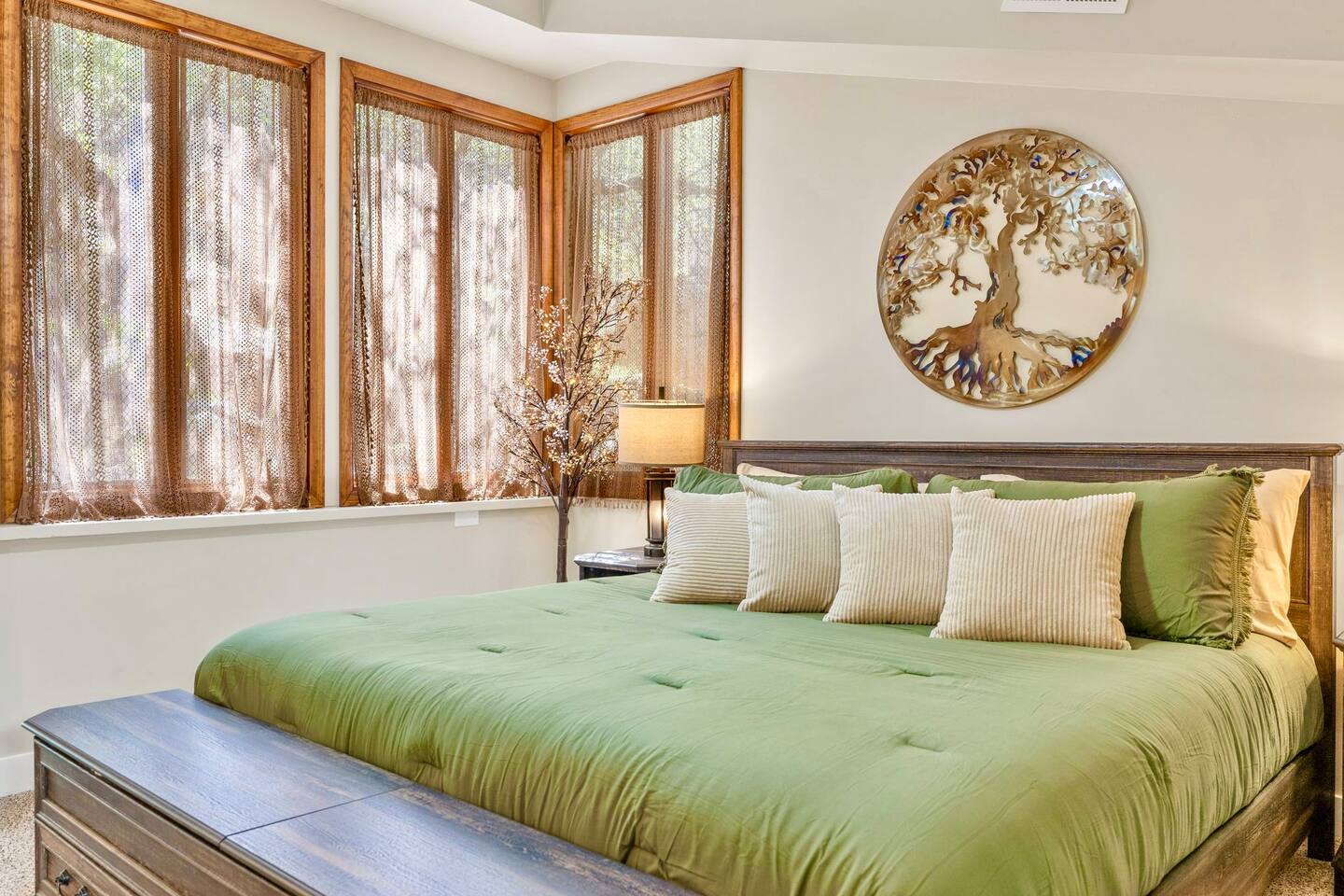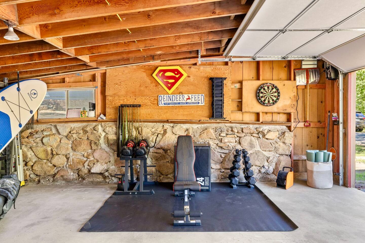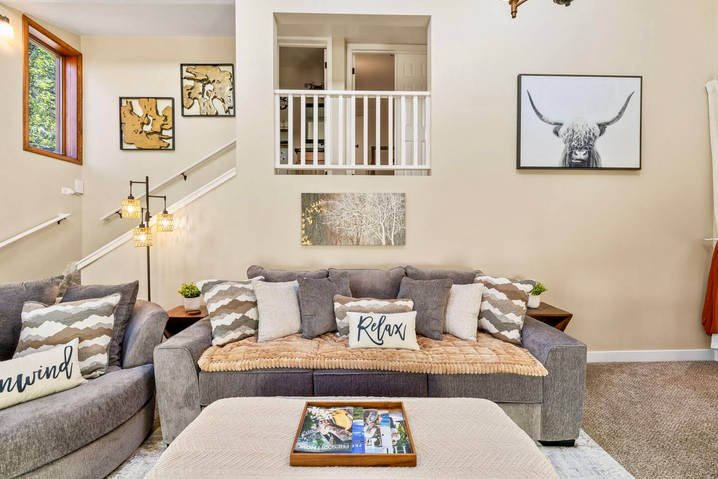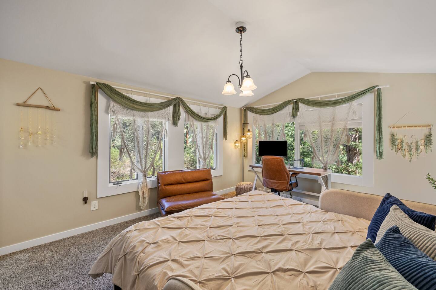 Welcome to the Treehouse, Prescott’s Favorite home away from home in the serene Mountain Club neighborhood, just 5 minutes from Courthouse Plaza! Enjoy a well appointed kitchen with everything you need, including a Keurig/drip combo with complimentary coffee and appliances like a blender and ice maker. Relax in the cozy living room with comfortable seating, a sofa bed, and an 85” smart TV, complete with a nostalgic Nintendo 64 and plenty of books, all bathed in natural light. Gather around the dining area, which comfortably seats six, making family meals a joy. Bedroom Highlights: - Master Bedroom: Indulge in a king-sized bed, dresser, nightstand, and forest views, plus an en suite bathroom with a soaking tub, shower, double sinks, and a large walk-in closet. - Bedroom 2: Bright and airy, featuring a daybed convertible to a king or two twin beds, along with a dedicated workspace with a desk and monitor. - Kids Room: Delight in the Peter Pan-inspired decor, complete with a twin-over-full bunk bed, canopy, and cuddly plushies. - Bonus Bedroom: A semi-private king-sized loft with a game table, loveseat, ottoman, and dresser for added comfort. Bathrooms: Enjoy the luxury of a master en suite bathroom and a second bathroom with a shower, both stocked with premium amenities, plus a convenient half bath. Special features: • Garage converted into a gym • Mountain bikes for local trails • Two paddle boards and a kayak for outdoor fun • Outdoor lighting and seating • Phenomenal Hospitality during your stay Book your stay in the Treehouse and create unforgettable memories in Prescott, Arizona!