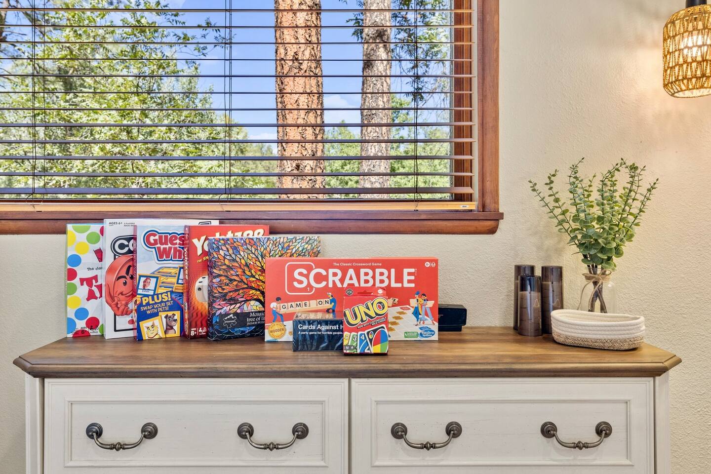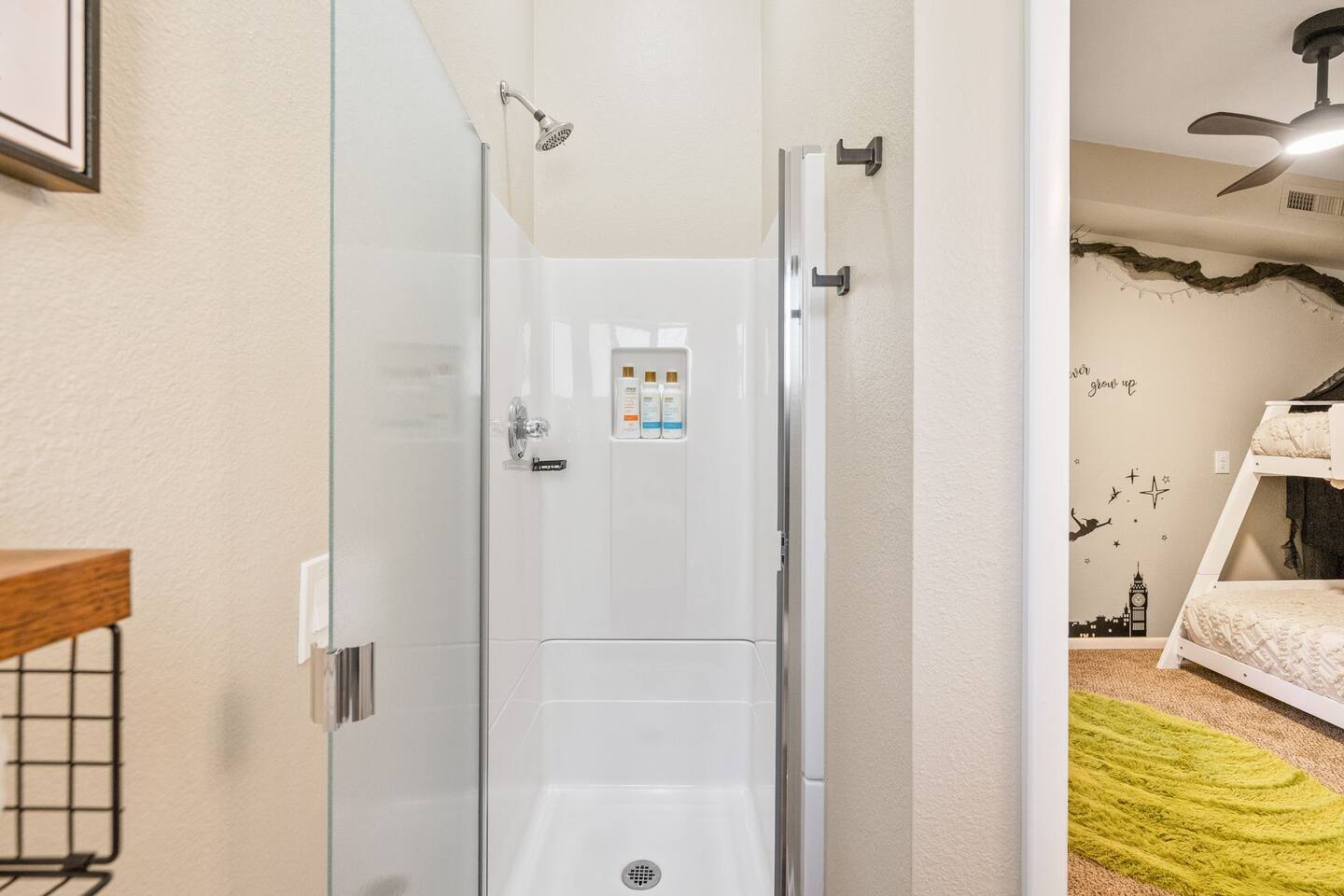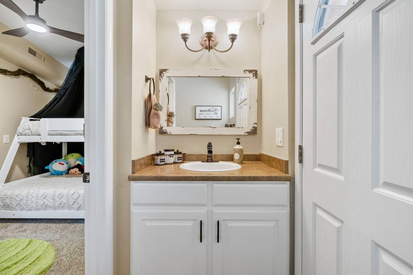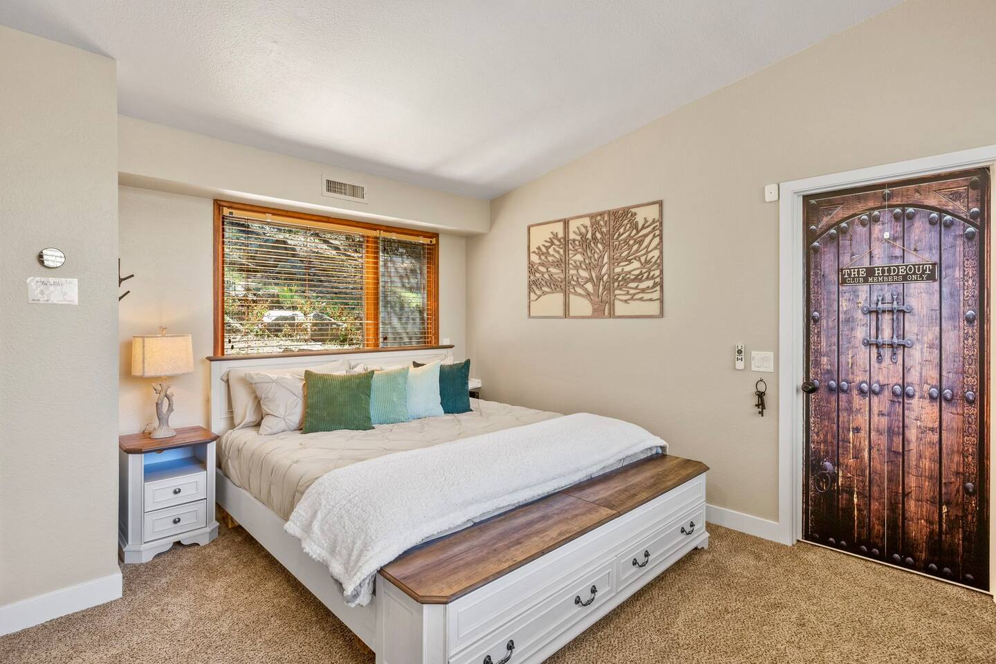 Welcome to the Treehouse, Prescott’s Favorite home away from home in the serene Mountain Club neighborhood, just 5 minutes from Courthouse Plaza! Enjoy a well appointed kitchen with everything you need, including a Keurig/drip combo with complimentary coffee and appliances like a blender and ice maker. Relax in the cozy living room with comfortable seating, a sofa bed, and an 85” smart TV, complete with a nostalgic Nintendo 64 and plenty of books, all bathed in natural light. Gather around the dining area, which comfortably seats six, making family meals a joy. Bedroom Highlights: - Master Bedroom: Indulge in a king-sized bed, dresser, nightstand, and forest views, plus an en suite bathroom with a soaking tub, shower, double sinks, and a large walk-in closet. - Bedroom 2: Bright and airy, featuring a daybed convertible to a king or two twin beds, along with a dedicated workspace with a desk and monitor. - Kids Room: Delight in the Peter Pan-inspired decor, complete with a twin-over-full bunk bed, canopy, and cuddly plushies. - Bonus Bedroom: A semi-private king-sized loft with a game table, loveseat, ottoman, and dresser for added comfort. Bathrooms: Enjoy the luxury of a master en suite bathroom and a second bathroom with a shower, both stocked with premium amenities, plus a convenient half bath. Special features: • Garage converted into a gym • Mountain bikes for local trails • Two paddle boards and a kayak for outdoor fun • Outdoor lighting and seating • Phenomenal Hospitality during your stay Book your stay in the Treehouse and create unforgettable memories in Prescott, Arizona!