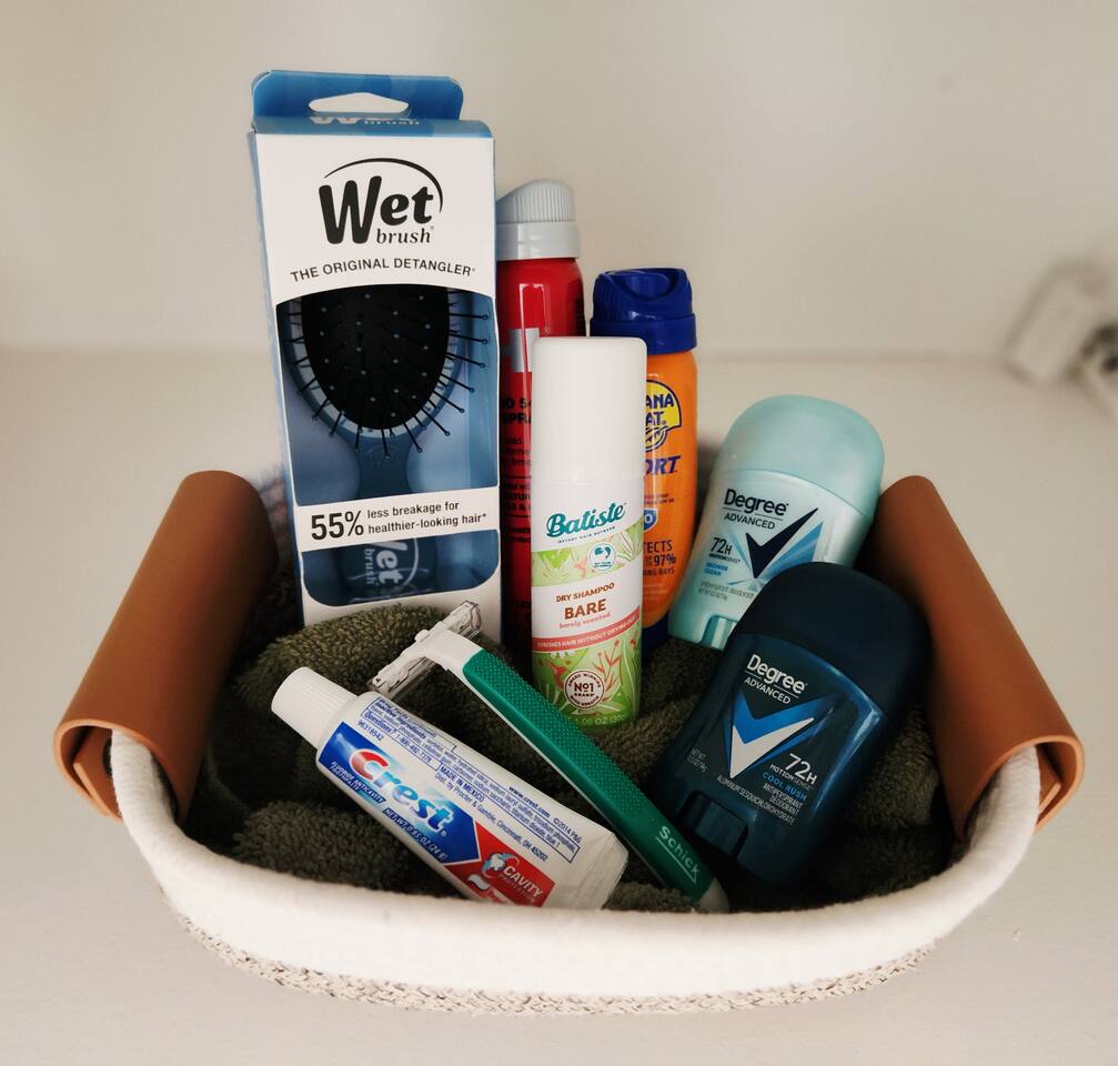 - Essentials Towels, bed sheets, soap, toilet paper, and pillows