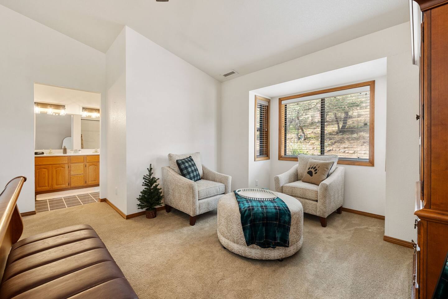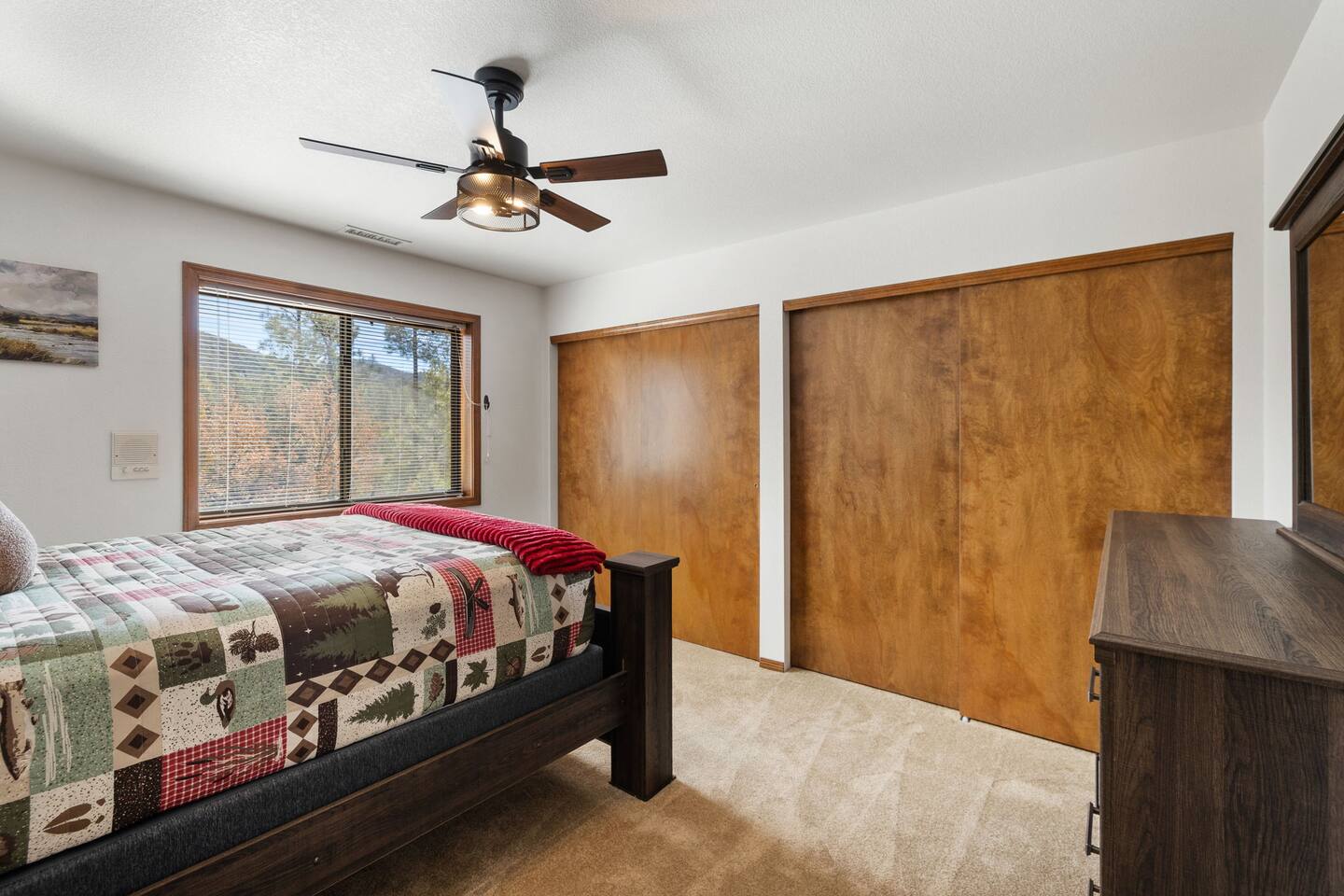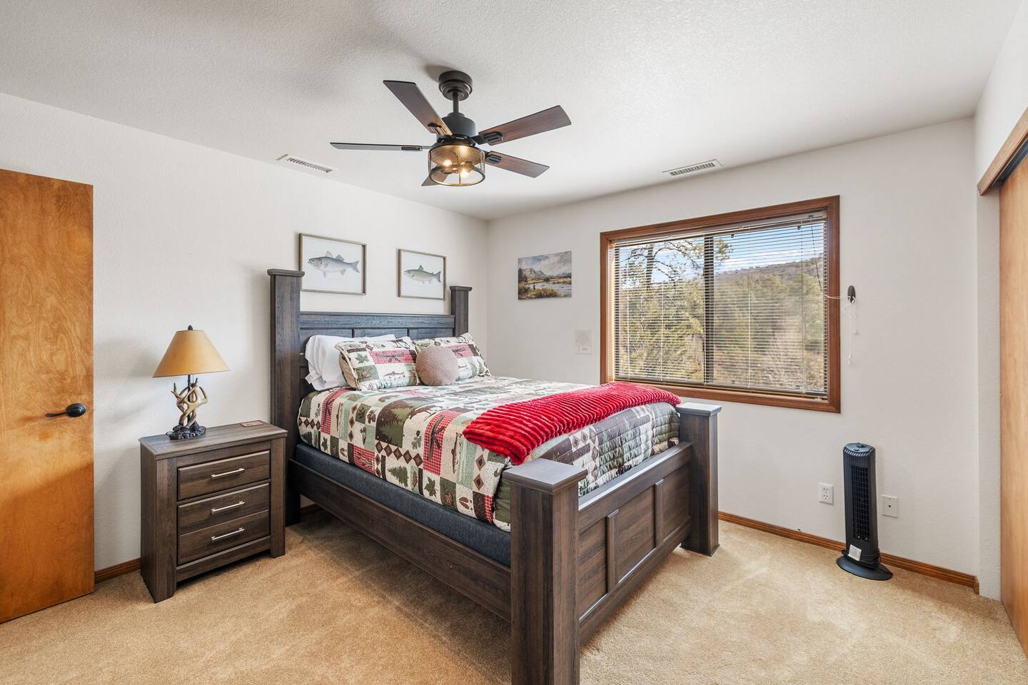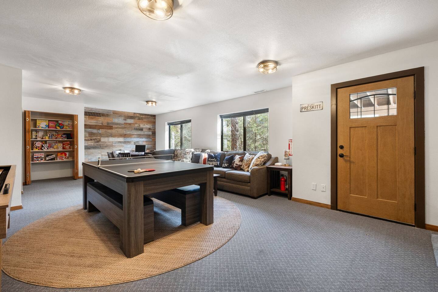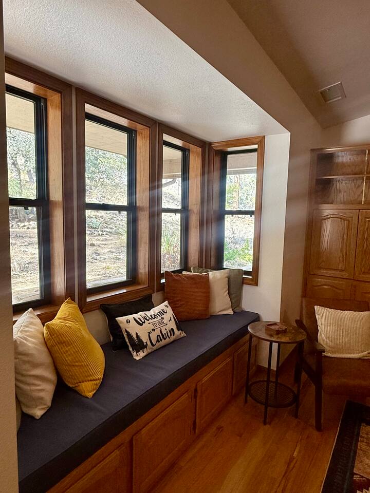 Welcome to Home Base — Luxury Forest Cabin near Prescott National Forest | Sleeps 14 A spacious, family-friendly luxury cabin in Hidden Valley Ranch — 5 bedrooms, 11 beds, 3 full baths, movie theater, game room, and easy access to trails and downtown Prescott. ** Professional Photo's Coming Soon Quick Highlights: - Sleeps up to 14 • 5 bedrooms • 11 beds • 3 full bathrooms - Master suite with king bed + ensuite bath - Two queen bedrooms; two bedrooms with twin bunk beds (4 twins each) - Fully stocked full-size kitchen (upstairs) - Upstairs living room + loft with chaise lounge and reading nook - Downstairs movie theater room + extra-large sectional - Separate game room for kids and adults - Outdoor BBQ, dining, and lounge seating in quiet pine setting - Bordering Prescott National Forest — trail access & wildlife viewing (deer, javelina, birds) - 8-minute drive to Courthouse Plaza/Whiskey Row • 6 min to Safeway • 11 min to Fry’s Full description: Upstairs you’ll find a full-size, fully stocked kitchen with everything needed to cook and serve meals, an inviting living area with multiple seating zones, and a loft with a chaise lounge and reading material for quiet downtime. The master suite features a king bed and private ensuite. Two additional bedrooms offer queen beds, and two bedrooms each have twin bunkbeds — great for kids or extra guests. All three bathrooms are full bathrooms and come stocked with shampoo, conditioner, body wash, and fresh towels for your convenience. Downstairs is built for fun: a huge sectional faces the movie theater room, and a separate game room provides extra entertainment for kids and adults alike. Outside, enjoy grilling and dining at the patio table while soaking in the serene forest surroundings and watching local wildlife. Neighborhood: Situated in an upscale, peaceful neighborhood bordering Prescott National Forest, Hidden Valley Ranch offers easy trail access and beautiful pine-lined views while staying only minutes from downtown Prescott’s restaurants and shops. Whether you want outdoor adventure or a cozy retreat, you get both. Must-knows: - Check-in: 4:00 PM - Checkout: 10:00 AM - Maximum occupancy: 14 guests - No smoking on property - No pets (please respect neighborhood safety) - Fully supplied bathrooms and kitchen essentials included Why guests love it: Space for large families, multiple hangout areas, theater + game room, and a private pine setting only minutes from downtown Prescott — perfect for family reunions, multi-family stays, or a luxury forest getaway.