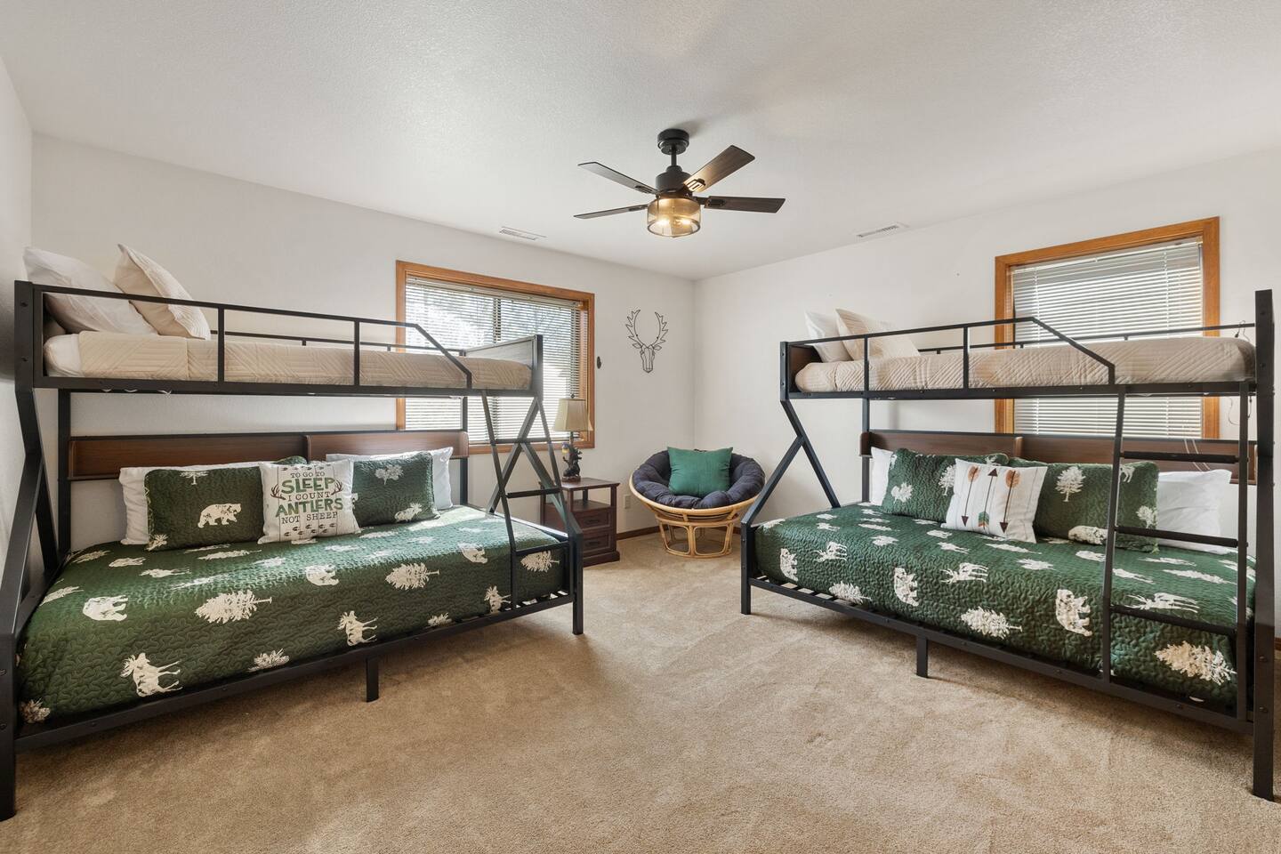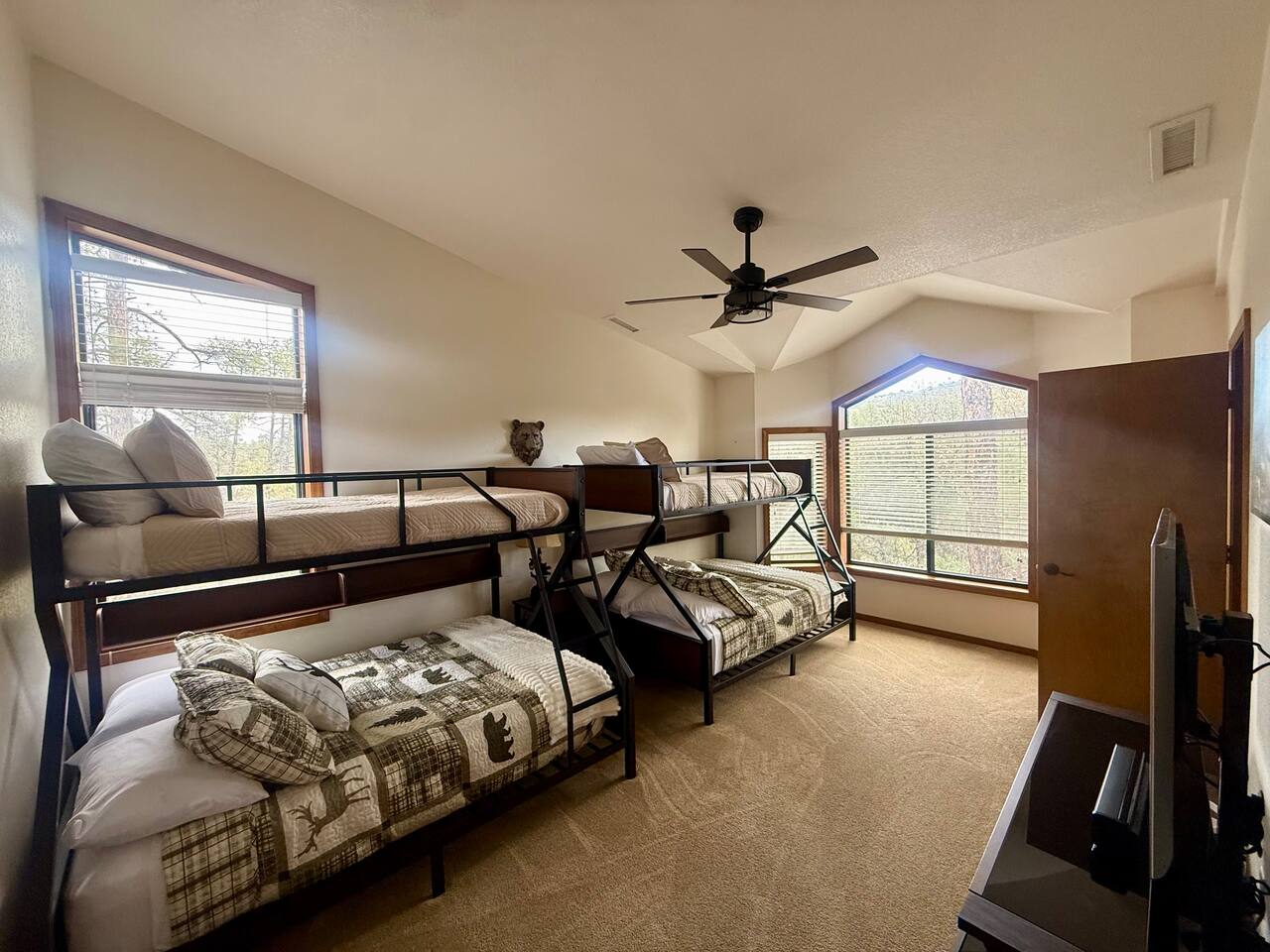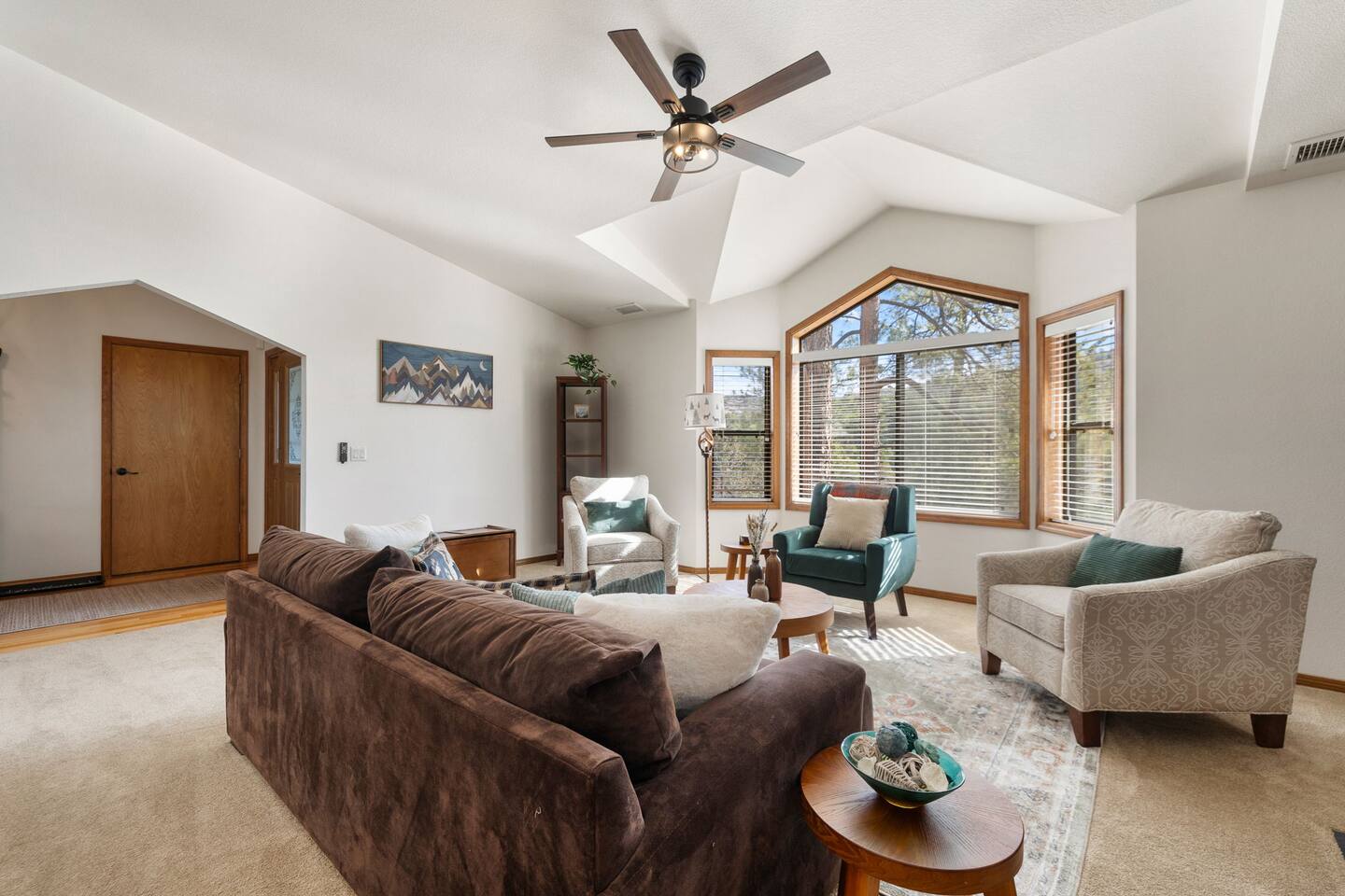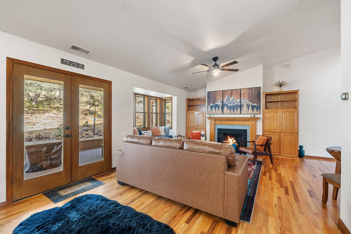 Welcome to Home Base — Luxury Forest Cabin near Prescott National Forest | Sleeps 14 A spacious, family-friendly luxury cabin in Hidden Valley Ranch — 5 bedrooms, 11 beds, 3 full baths, movie theater, game room, and easy access to trails and downtown Prescott. ** Professional Photo's Coming Soon Quick Highlights: - Sleeps up to 14 • 5 bedrooms • 11 beds • 3 full bathrooms - Master suite with king bed + ensuite bath - Two queen bedrooms; two bedrooms with twin bunk beds (4 twins each) - Fully stocked full-size kitchen (upstairs) - Upstairs living room + loft with chaise lounge and reading nook - Downstairs movie theater room + extra-large sectional - Separate game room for kids and adults - Outdoor BBQ, dining, and lounge seating in quiet pine setting - Bordering Prescott National Forest — trail access & wildlife viewing (deer, javelina, birds) - 8-minute drive to Courthouse Plaza/Whiskey Row • 6 min to Safeway • 11 min to Fry’s Full description: Upstairs you’ll find a full-size, fully stocked kitchen with everything needed to cook and serve meals, an inviting living area with multiple seating zones, and a loft with a chaise lounge and reading material for quiet downtime. The master suite features a king bed and private ensuite. Two additional bedrooms offer queen beds, and two bedrooms each have twin bunkbeds — great for kids or extra guests. All three bathrooms are full bathrooms and come stocked with shampoo, conditioner, body wash, and fresh towels for your convenience. Downstairs is built for fun: a huge sectional faces the movie theater room, and a separate game room provides extra entertainment for kids and adults alike. Outside, enjoy grilling and dining at the patio table while soaking in the serene forest surroundings and watching local wildlife. Neighborhood: Situated in an upscale, peaceful neighborhood bordering Prescott National Forest, Hidden Valley Ranch offers easy trail access and beautiful pine-lined views while staying only minutes from downtown Prescott’s restaurants and shops. Whether you want outdoor adventure or a cozy retreat, you get both. Must-knows: - Check-in: 4:00 PM - Checkout: 10:00 AM - Maximum occupancy: 14 guests - No smoking on property - No pets (please respect neighborhood safety) - Fully supplied bathrooms and kitchen essentials included Why guests love it: Space for large families, multiple hangout areas, theater + game room, and a private pine setting only minutes from downtown Prescott — perfect for family reunions, multi-family stays, or a luxury forest getaway.