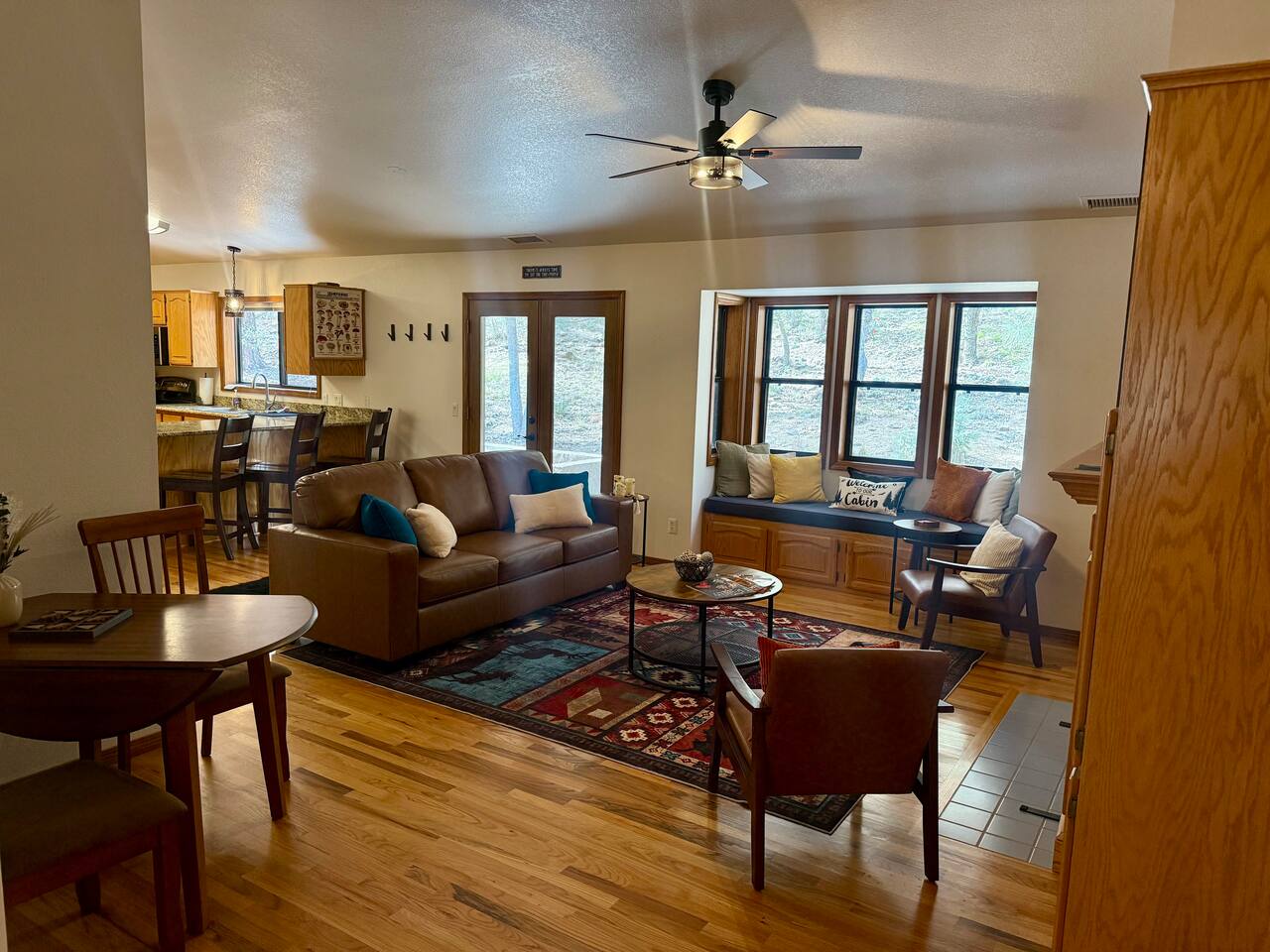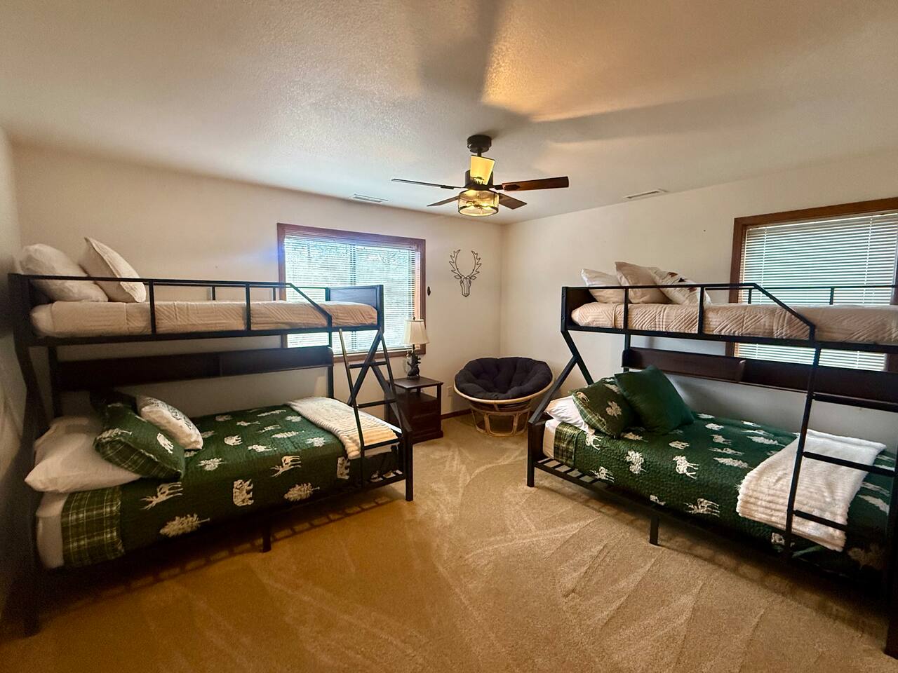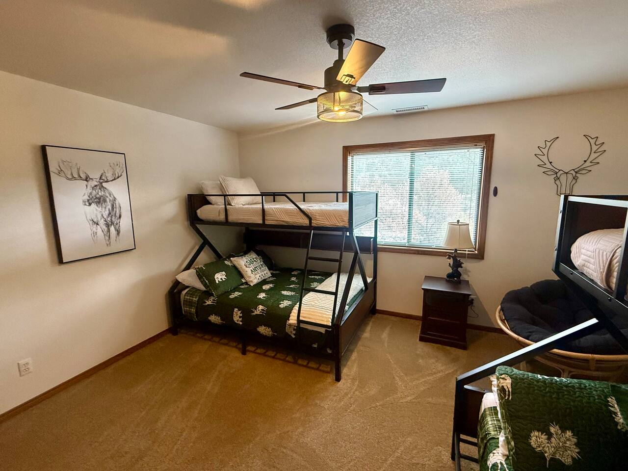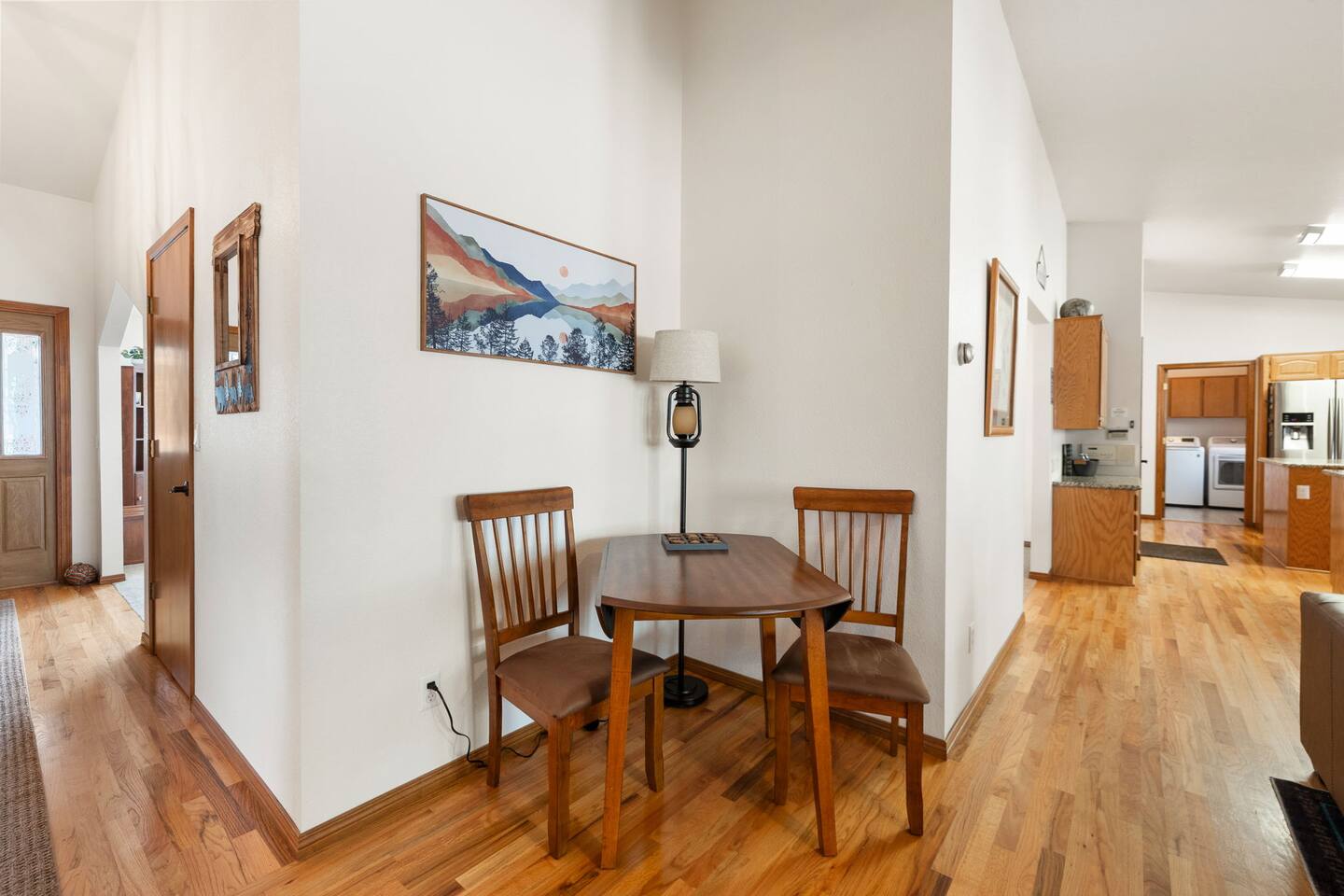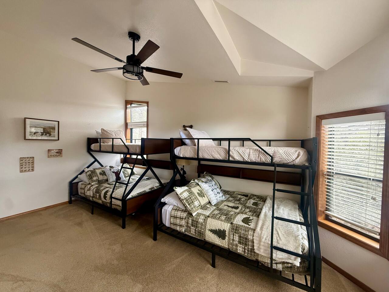Welcome to Home Base — Luxury Forest Cabin near Prescott National Forest | Sleeps 14 A spacious, family-friendly luxury cabin in Hidden Valley Ranch — 5 bedrooms, 11 beds, 3 full baths, movie theater, game room, and easy access to trails and downtown Prescott. ** Professional Photo's Coming Soon Quick Highlights: - Sleeps up to 14 • 5 bedrooms • 11 beds • 3 full bathrooms - Master suite with king bed + ensuite bath - Two queen bedrooms; two bedrooms with twin bunk beds (4 twins each) - Fully stocked full-size kitchen (upstairs) - Upstairs living room + loft with chaise lounge and reading nook - Downstairs movie theater room + extra-large sectional - Separate game room for kids and adults - Outdoor BBQ, dining, and lounge seating in quiet pine setting - Bordering Prescott National Forest — trail access & wildlife viewing (deer, javelina, birds) - 8-minute drive to Courthouse Plaza/Whiskey Row • 6 min to Safeway • 11 min to Fry’s Full description: Upstairs you’ll find a full-size, fully stocked kitchen with everything needed to cook and serve meals, an inviting living area with multiple seating zones, and a loft with a chaise lounge and reading material for quiet downtime. The master suite features a king bed and private ensuite. Two additional bedrooms offer queen beds, and two bedrooms each have twin bunkbeds — great for kids or extra guests. All three bathrooms are full bathrooms and come stocked with shampoo, conditioner, body wash, and fresh towels for your convenience. Downstairs is built for fun: a huge sectional faces the movie theater room, and a separate game room provides extra entertainment for kids and adults alike. Outside, enjoy grilling and dining at the patio table while soaking in the serene forest surroundings and watching local wildlife. Neighborhood: Situated in an upscale, peaceful neighborhood bordering Prescott National Forest, Hidden Valley Ranch offers easy trail access and beautiful pine-lined views while staying only minutes from downtown Prescott’s restaurants and shops. Whether you want outdoor adventure or a cozy retreat, you get both. Must-knows: - Check-in: 4:00 PM - Checkout: 10:00 AM - Maximum occupancy: 14 guests - No smoking on property - No pets (please respect neighborhood safety) - Fully supplied bathrooms and kitchen essentials included Why guests love it: Space for large families, multiple hangout areas, theater + game room, and a private pine setting only minutes from downtown Prescott — perfect for family reunions, multi-family stays, or a luxury forest getaway.