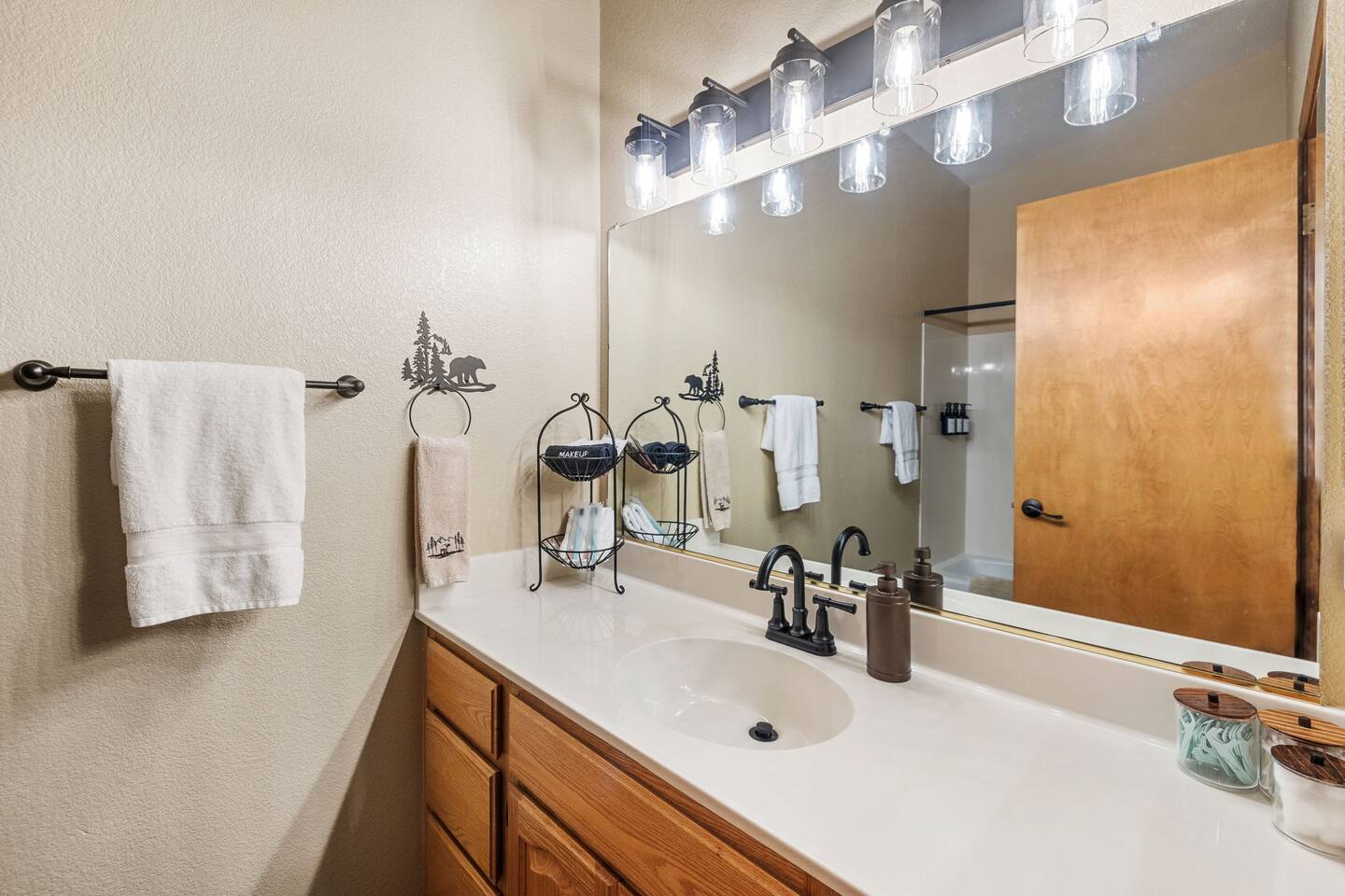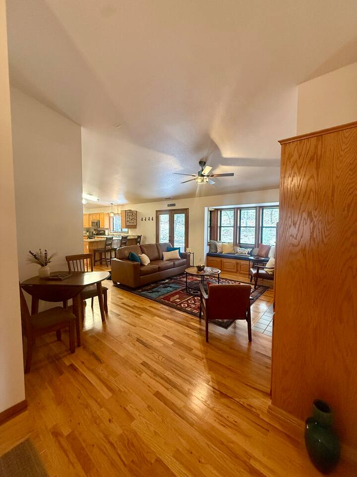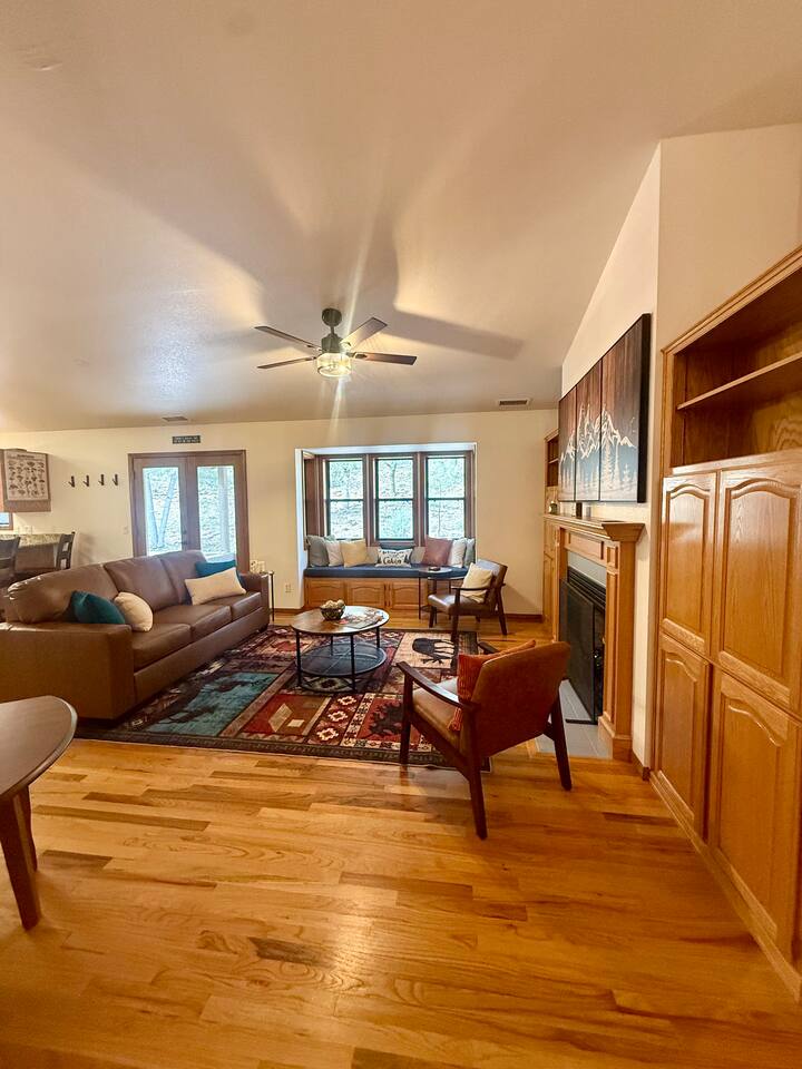 Home Base is a luxury family cabin in a peaceful, forested neighborhood just minutes from downtown. Designed for comfort and connection, the home offers 5 bedrooms, 11 beds, and 3 full baths. Enjoy a movie room, game room, and a large dining table perfect for gathering. Wake up to gorgeous forest views and frequent sightings of local wildlife, creating a relaxing retreat with the convenience of nearby dining, shopping, and attractions. Relax with the family at our peaceful home away from home.