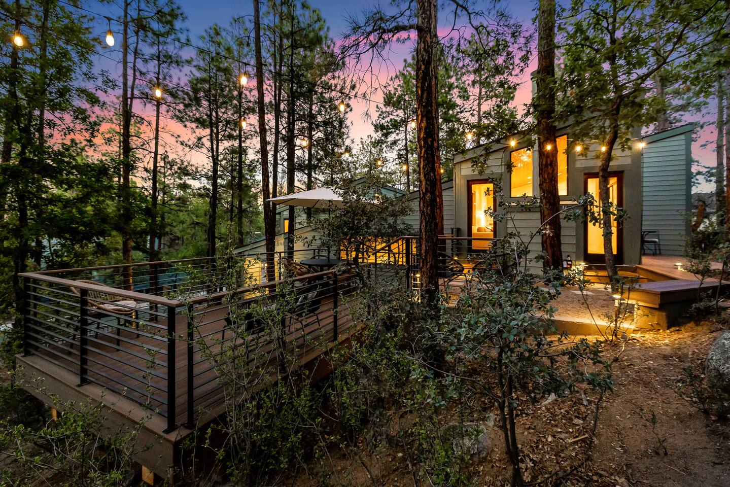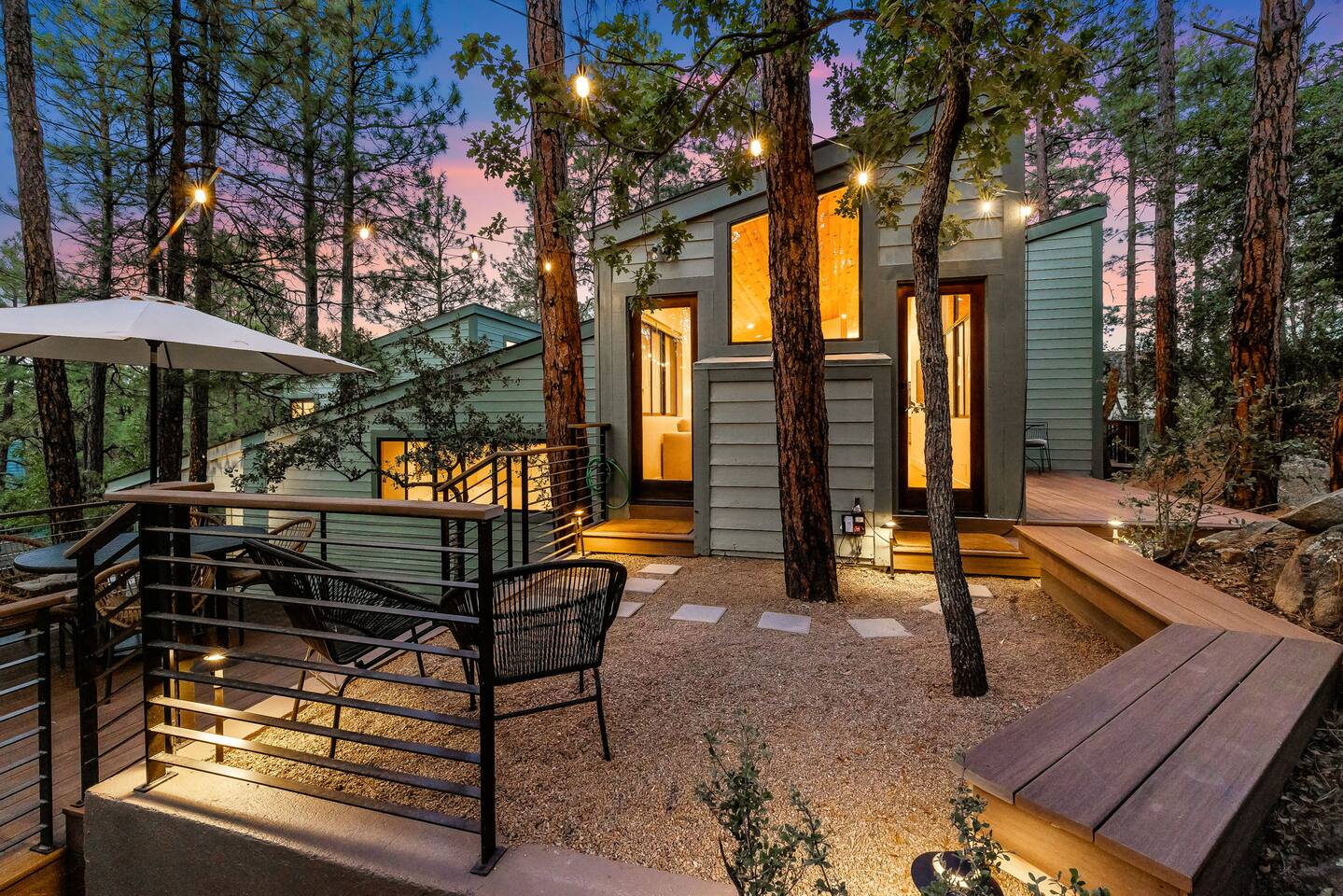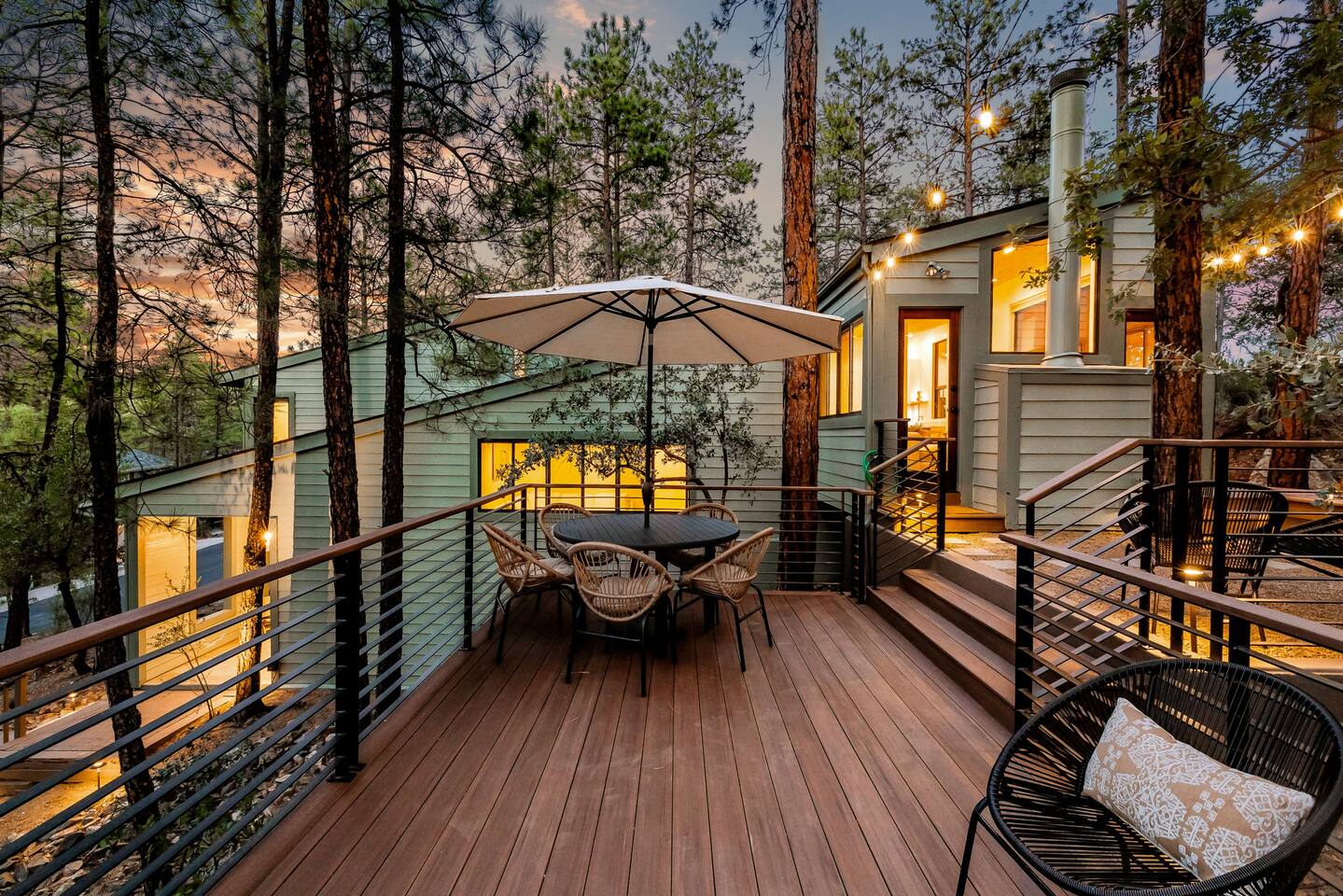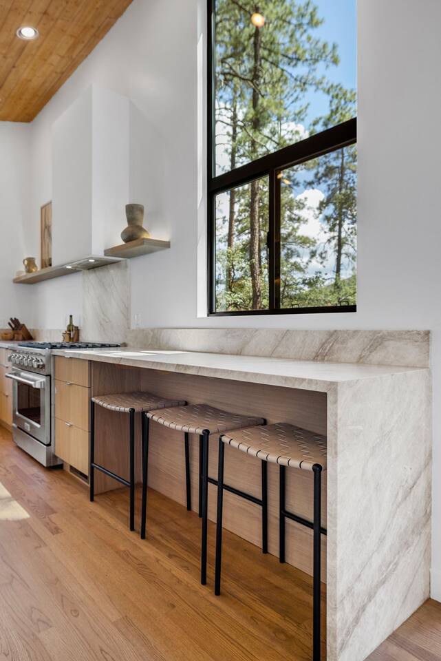 Experience the Prescott Treehouse newly relisted — a serene, forestside retreat thoughtfully designed for comfort and style. This four-bedroom, three-bath home blends striking architecture, curated interiors, and brand-new furnishings with luxurious finishes, all set among towering Ponderosa pines. - Spacious 4 bed & 3 bath with boutique-quality furnishings - Quiet location offering privacy and pine-scent - 8-minute drive to Courthouse Square and iconic Whiskey Row & Prescott Rodeo Grounds