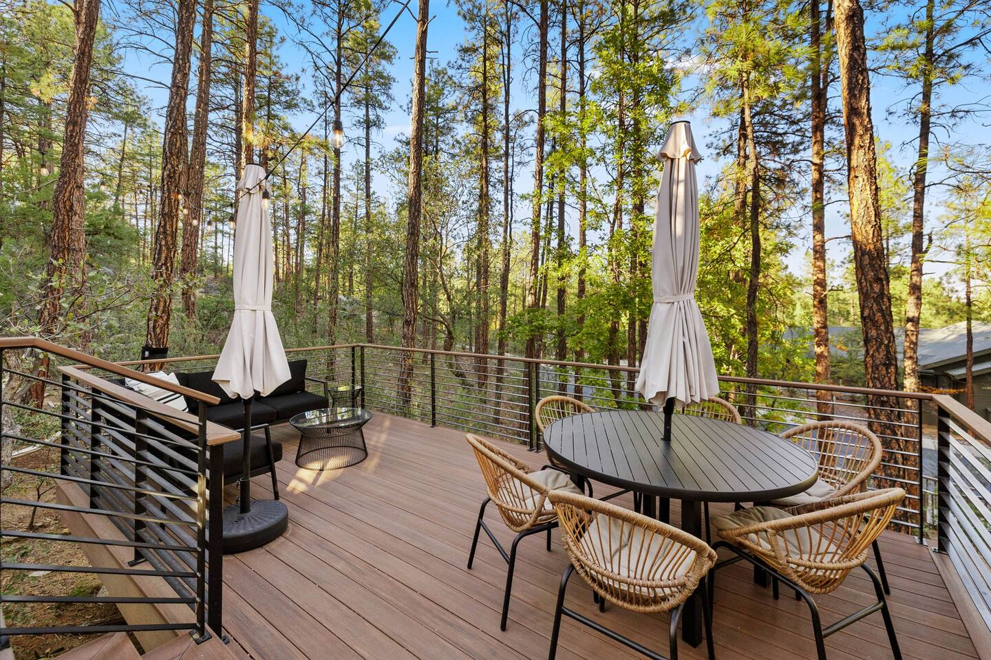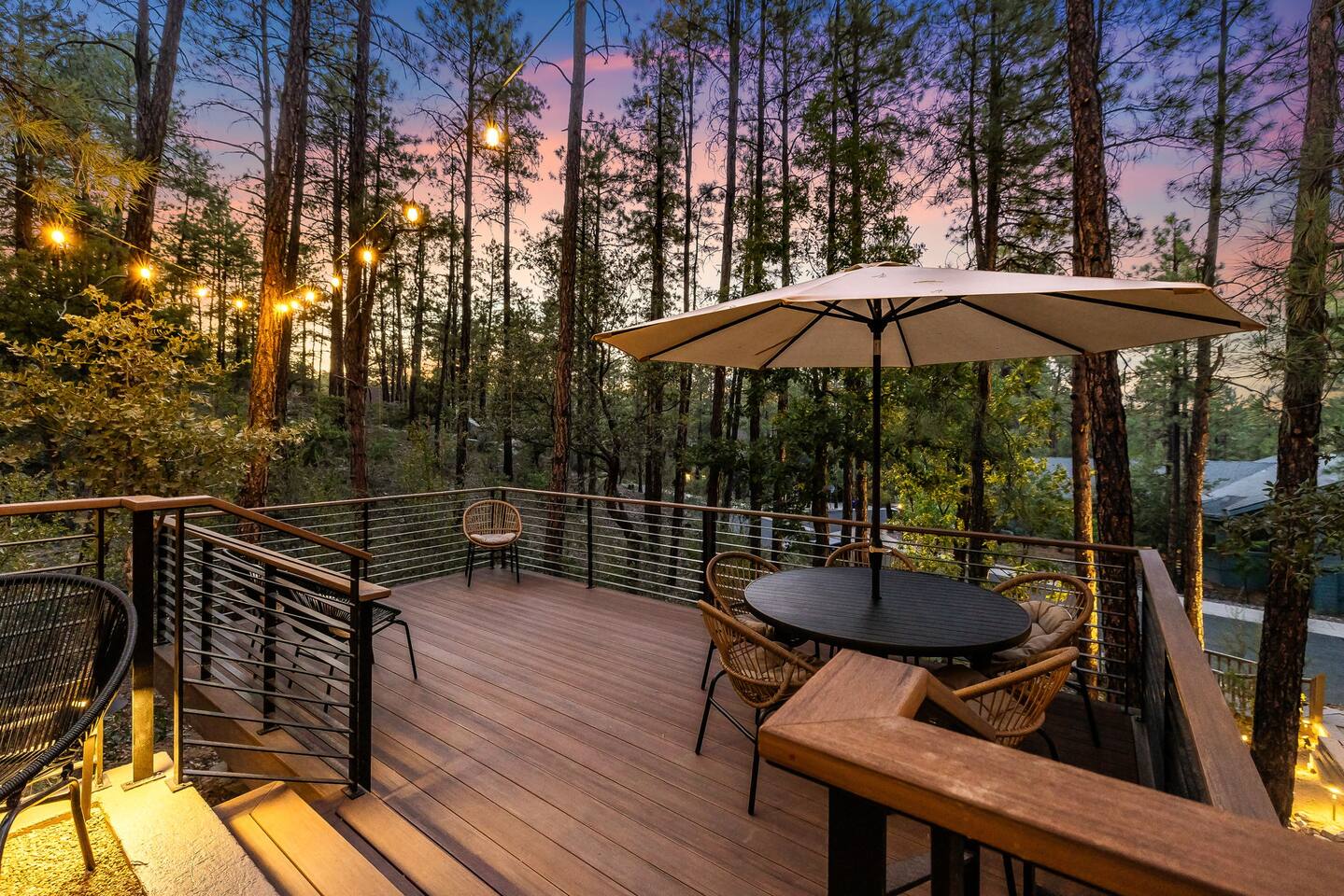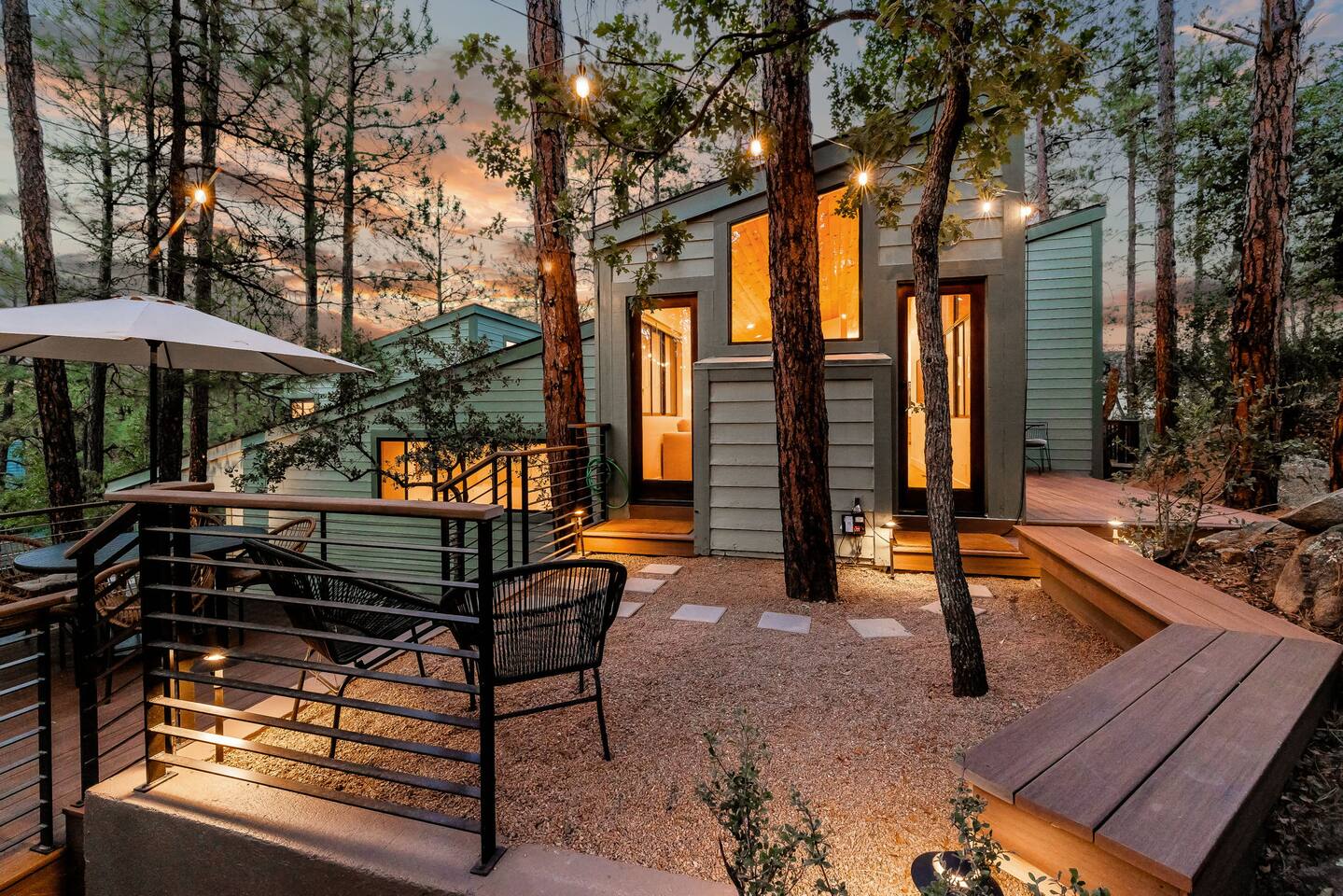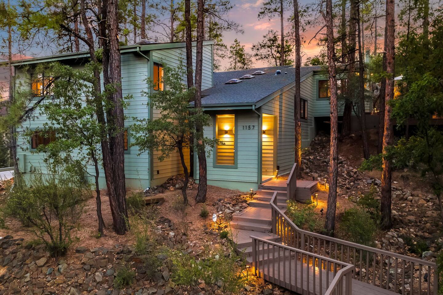 Experience the Prescott Treehouse newly relisted — a serene, forestside retreat thoughtfully designed for comfort and style. This four-bedroom, three-bath home blends striking architecture, curated interiors, and brand-new furnishings with luxurious finishes, all set among towering Ponderosa pines. - Spacious 4 bed & 3 bath with boutique-quality furnishings - Quiet location offering privacy and pine-scent - 8-minute drive to Courthouse Square and iconic Whiskey Row & Prescott Rodeo Grounds