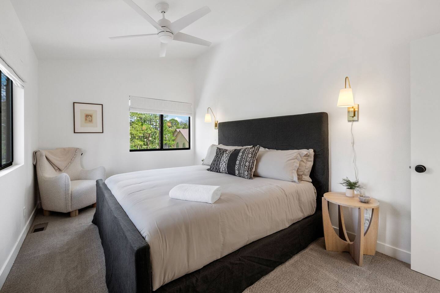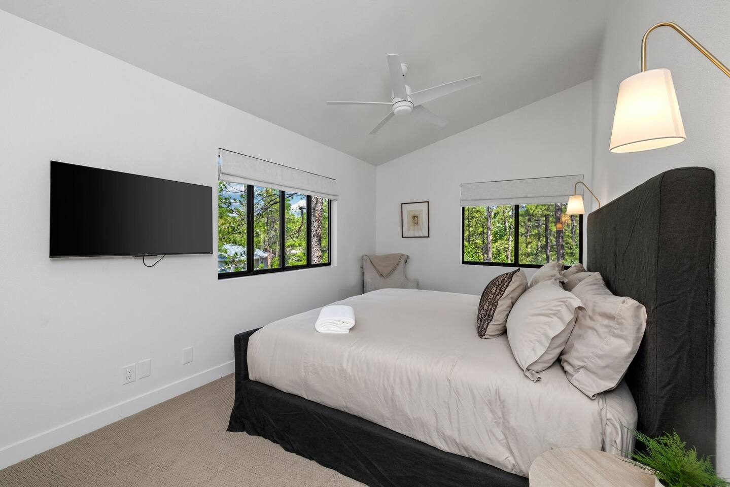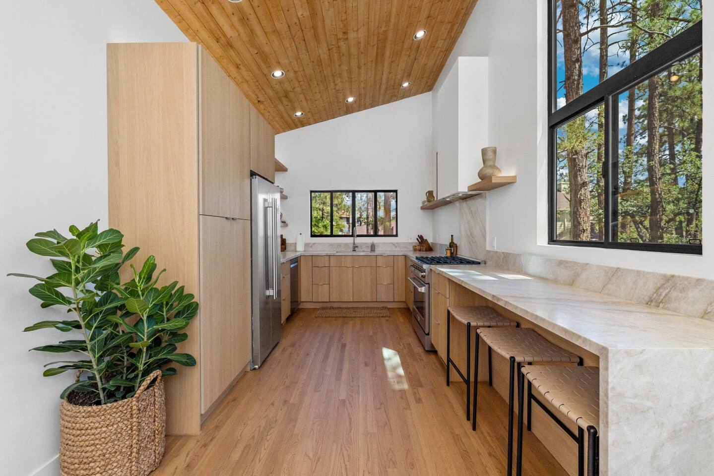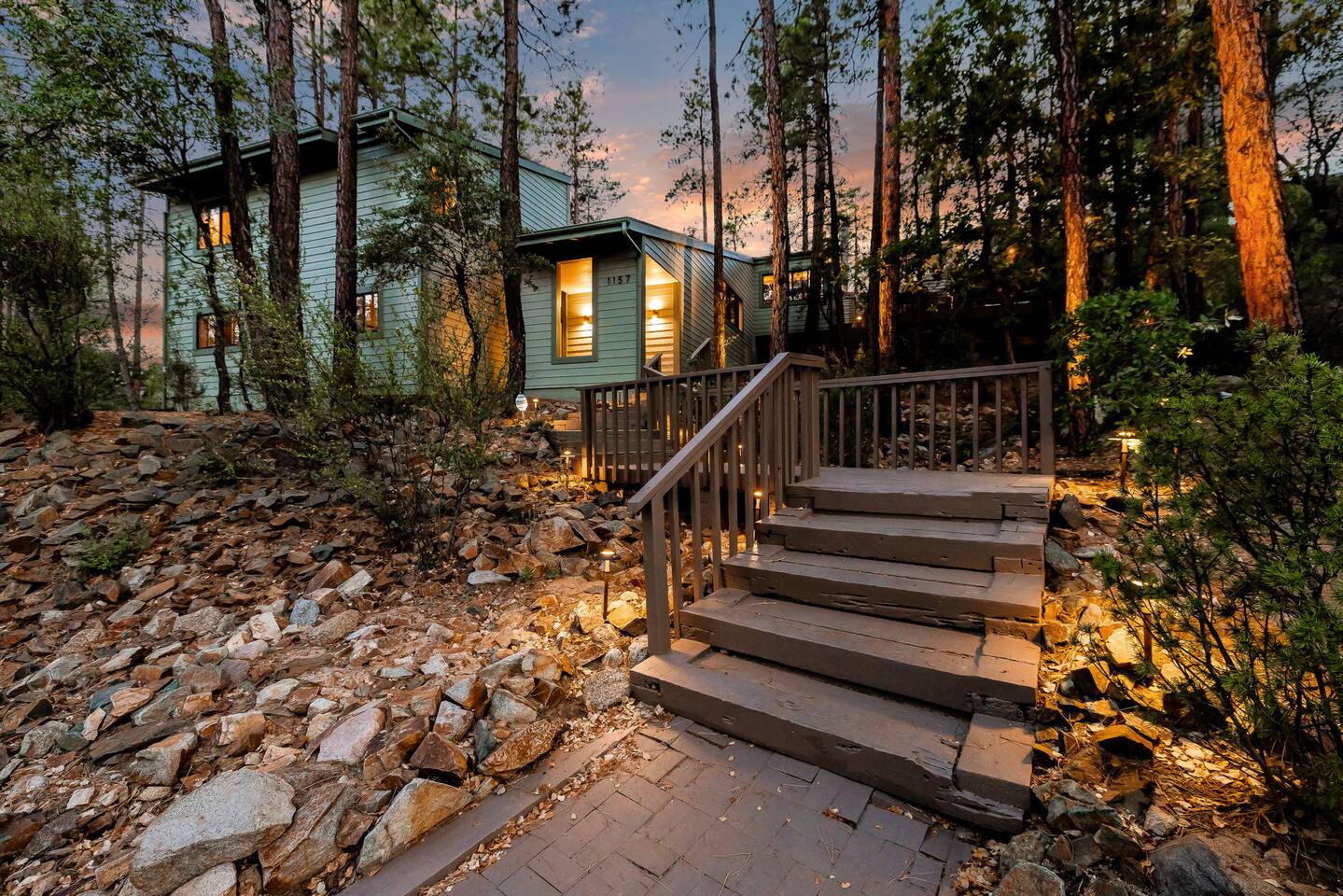 Experience the Prescott Treehouse newly relisted — a serene, forestside retreat thoughtfully designed for comfort and style. This four-bedroom, three-bath home blends striking architecture, curated interiors, and brand-new furnishings with luxurious finishes, all set among towering Ponderosa pines. - Spacious 4 bed & 3 bath with boutique-quality furnishings - Quiet location offering privacy and pine-scent - 8-minute drive to Courthouse Square and iconic Whiskey Row & Prescott Rodeo Grounds
