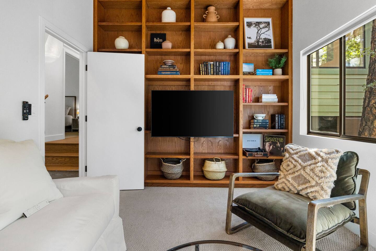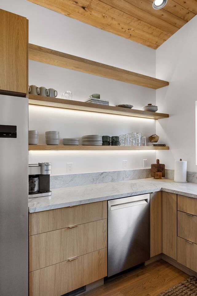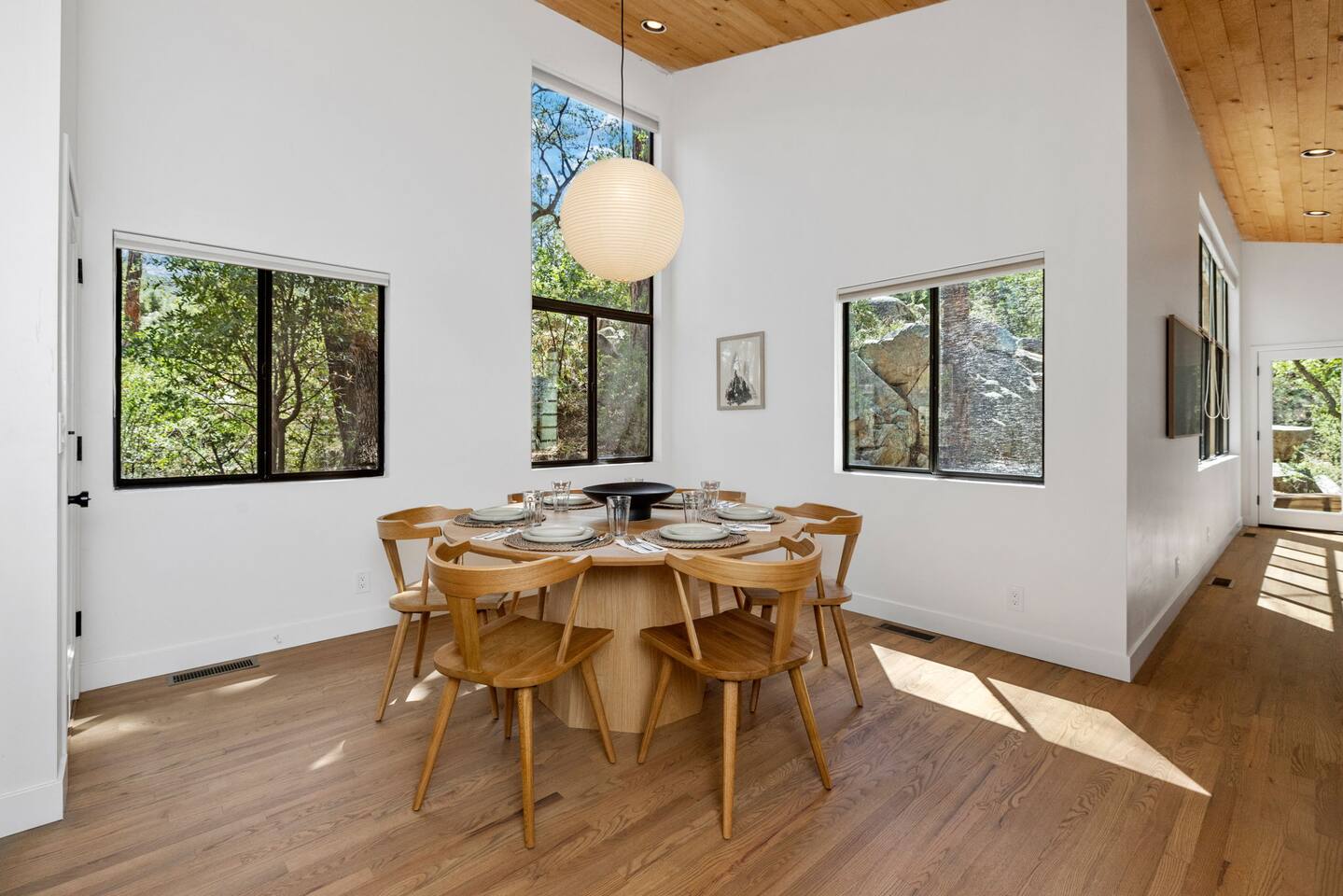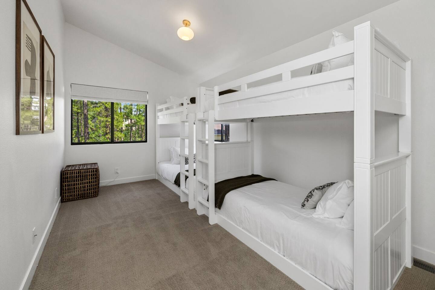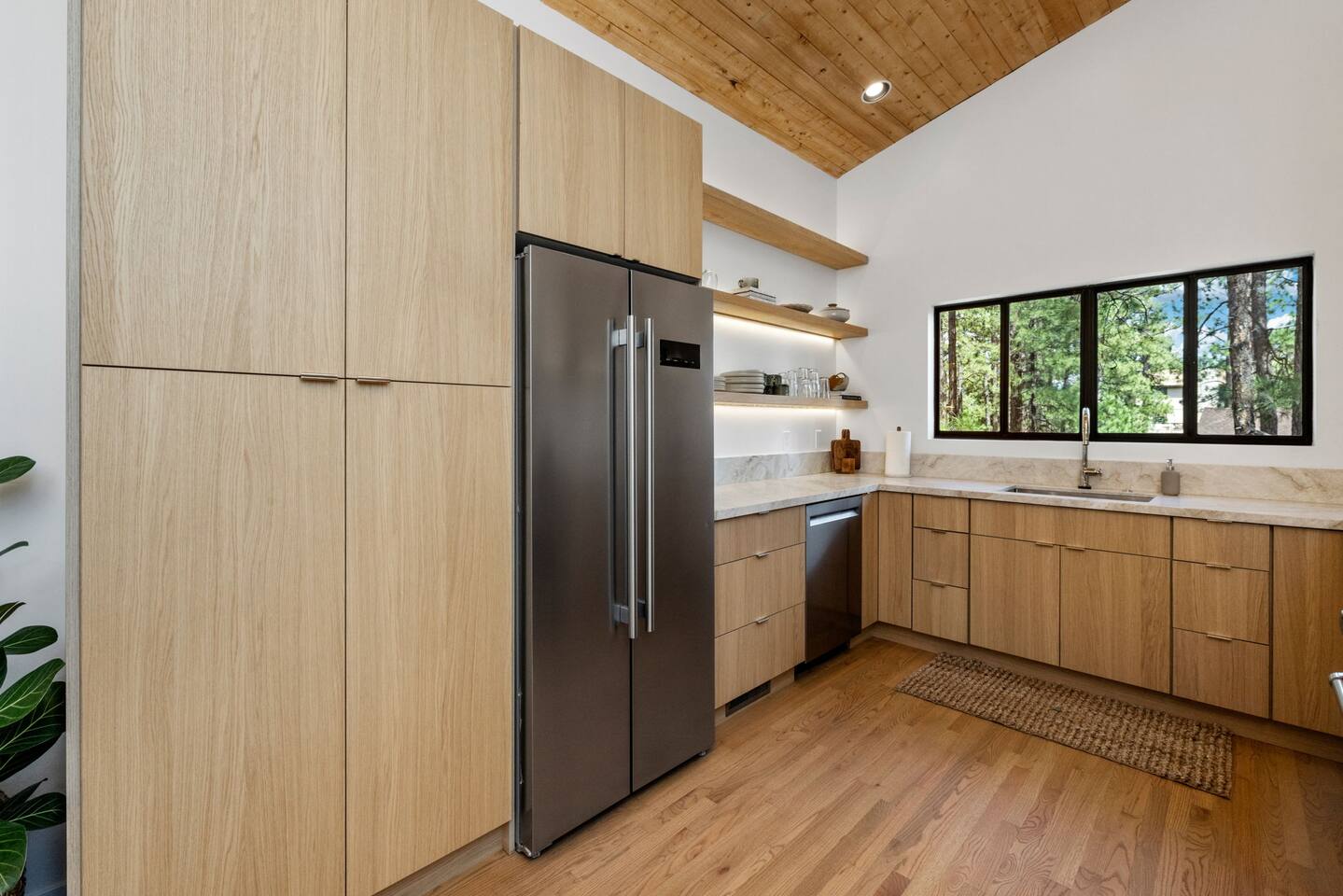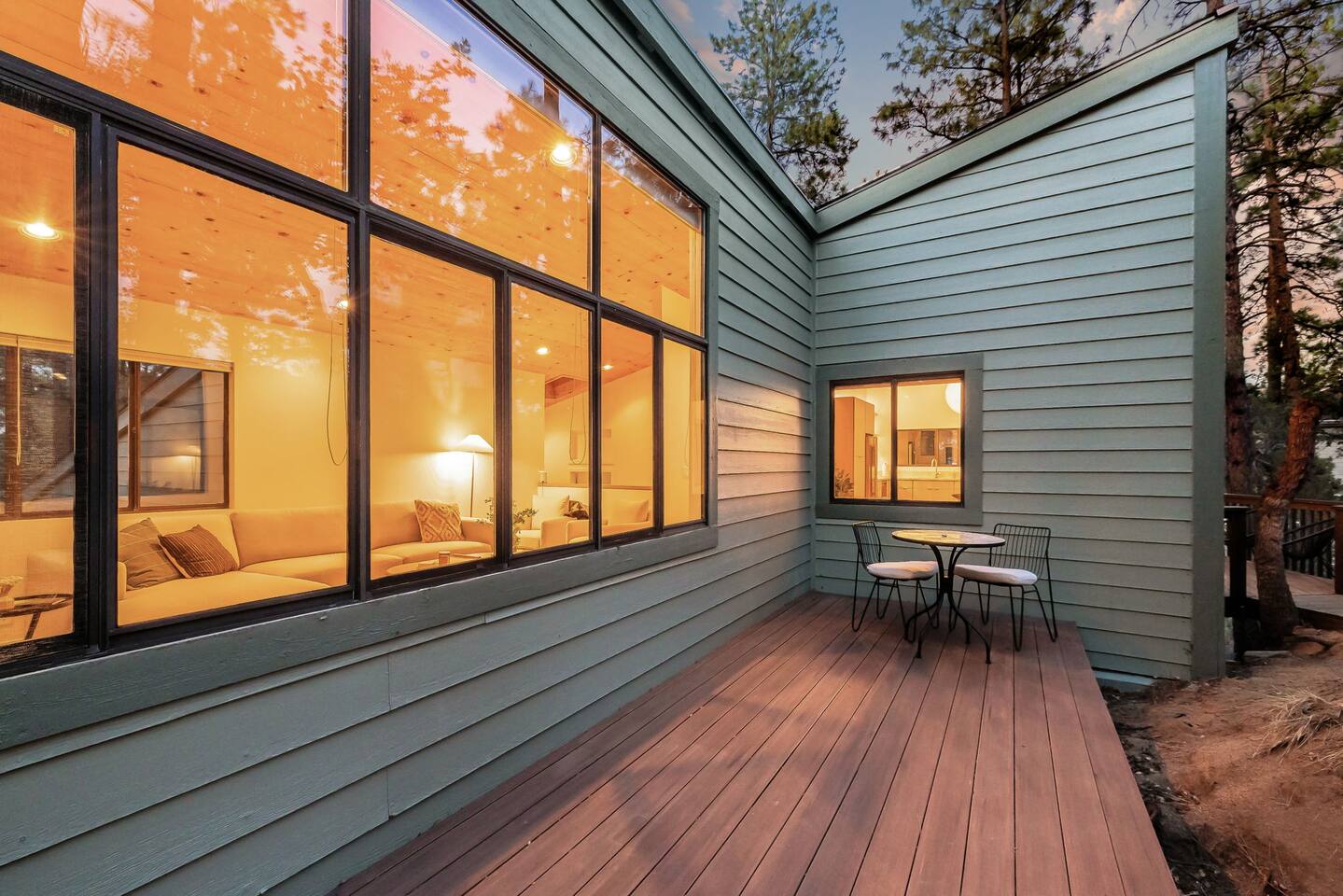 **Newly Relisted** Our property had nearly 90 five‑star reviews. The previous local managers sold their company to an out‑of‑state provider, so we have reintroduced the home under the new listing, with incredible new co-hosts. All local:) Key features - 4 bedrooms, 3 baths with hotel-quality linens and comfortable mattresses - 2 primary suites with king beds (one with en‑suite bath) - 2 private bunk bedrooms (Twin XL and twin configuration) — upper bunks reserved for those under 150 lbs for safety - 2 bedrooms and both living areas with smart TVs - High-speed Wi‑Fi and a dedicated laundry room with new machines - Multiple decks with lounge furniture; parking for up to 3 cars - Complimentary Public Goods toiletries in all bathrooms What guests say "Beautiful and peaceful — spotless, well appointed, and perfect for hiking and town visits. Five stars." — Maria "One of the most beautiful stays — comfortable, hotel-grade amenities, and great for families." — Alexandra Bedrooms Each room is designed for rest: room‑darkening shades, fans, ample storage, and thoughtful touches. Bedrooms are arranged to provide privacy, making the home ideal for two families or groups. Bathrooms Three well-appointed bathrooms with plush towels, hairdryers, and premium toiletries. The en‑suite features double vanities, a luxury shower, and quartzite counters. Other baths include a tub/shower combo and generous vanities with abundant natural light. Kitchen & dining Remodeled kitchen with quartzite counters, stainless appliances, a 6‑burner gas range, and full cookware. Vaulted ceilings and large windows overlook the pines; seating at a custom round oak table for shared meals. Coffee options include Keurig, drip, and pour‑over. Living spaces Two distinct living areas: a cozy library/theater room with a down sectional, record player, books, games, and a large smart TV; and a bright vaulted living room with a fireplace and expansive windows framing moss‑covered boulders and treetops. Outdoors Five decks, including bedroom decks, a BBQ deck, and a cantilevered entertaining deck with seating and dining. Large backyard with hammocks and safe climbing boulders for kids. Extras - Ping pong, cornhole, and family-friendly games - Parking for up to three cars Book a calm, comfortable stay surrounded by Ponderosa pines.